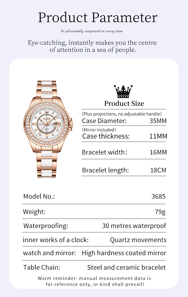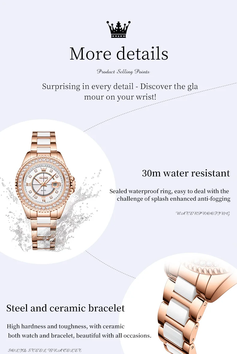 Luxury Diamond Ceramic Watch Brand Original Waterproof Women Exquisite Commemorative Gift Watch