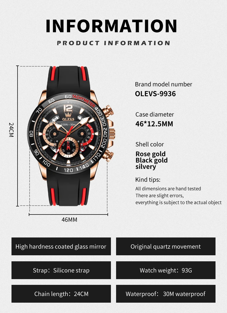 Chronograph waterproof 46mm Large dial quartz watch for man luminous sports genuine watch Chronograph waterproof 46mm Large dial quartz watch for man luminous sports genuine watch