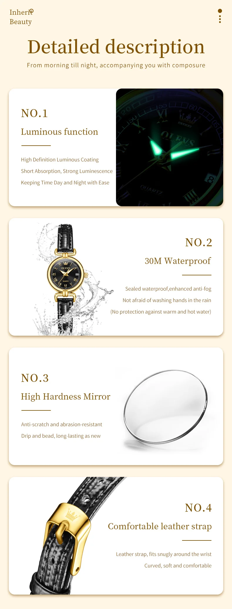 Leather Strap Original Quartz Watch Waterproof Luminous Date Watches For Women Relo