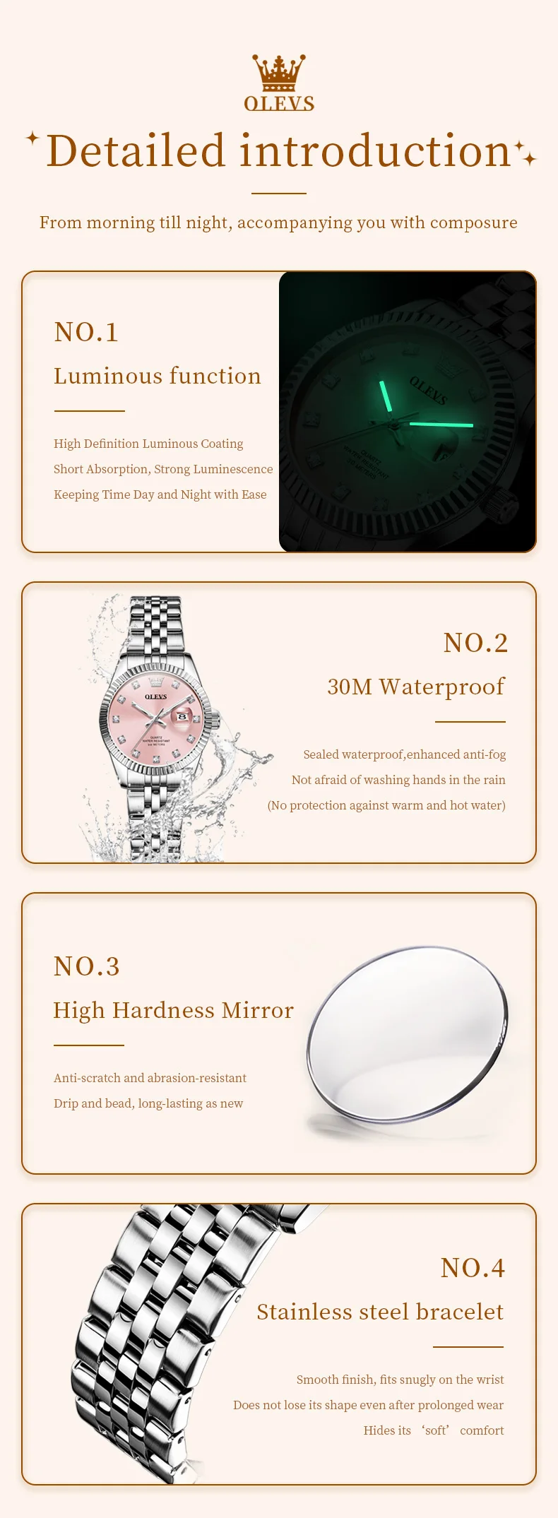 New Original Fashion Elegant Quartz Watch Waterproof Luminous Date Ladies Watches Gifts Reloj