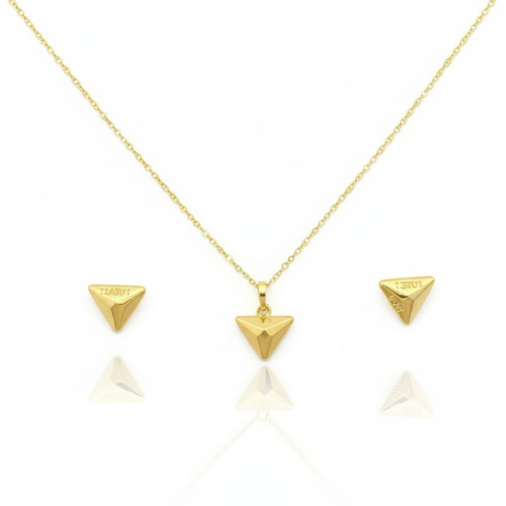 18K Real Gold Triangle Necklace And Earring Set
