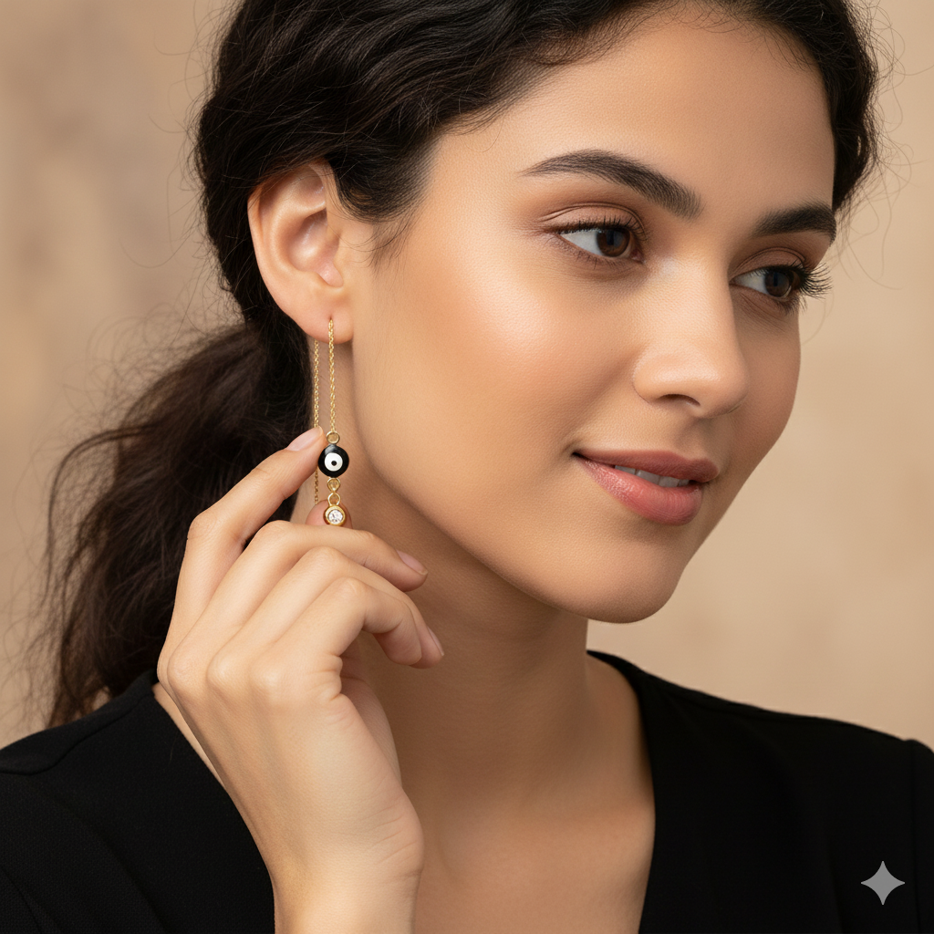 أقراط تيكتاك من الذهب الحقيقي عيار 18 قيراط على شكل عين الشر