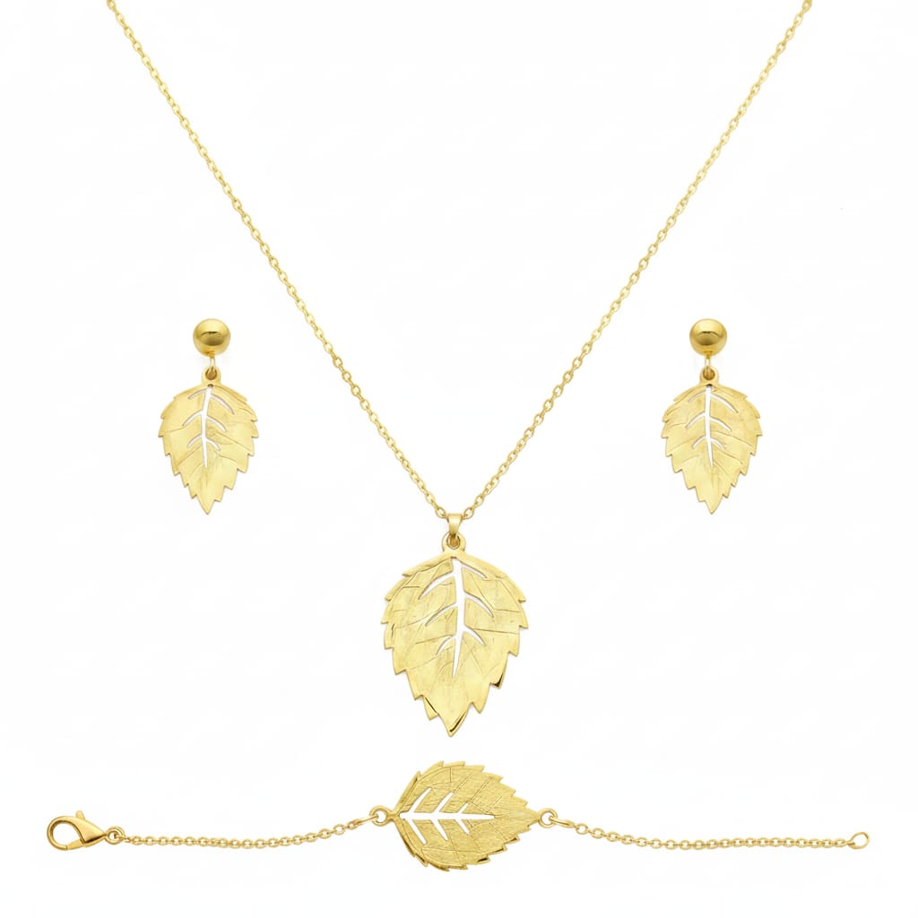 مجموعة مجوهرات من أوراق الذهب الحقيقي عيار 18 قيراط