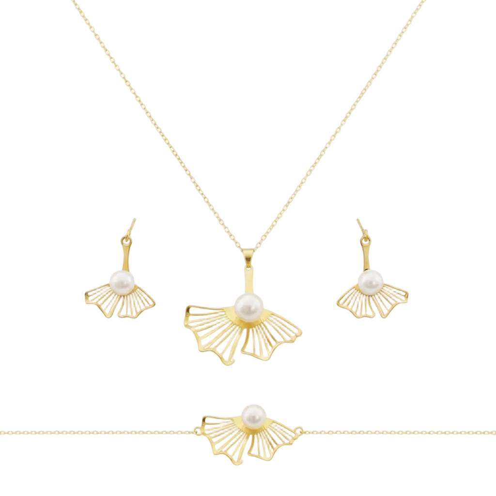 18K Gold Pearl Flower Jewelry Set – Elegant Necklace & Earrings | Embellish Gold Jewelry