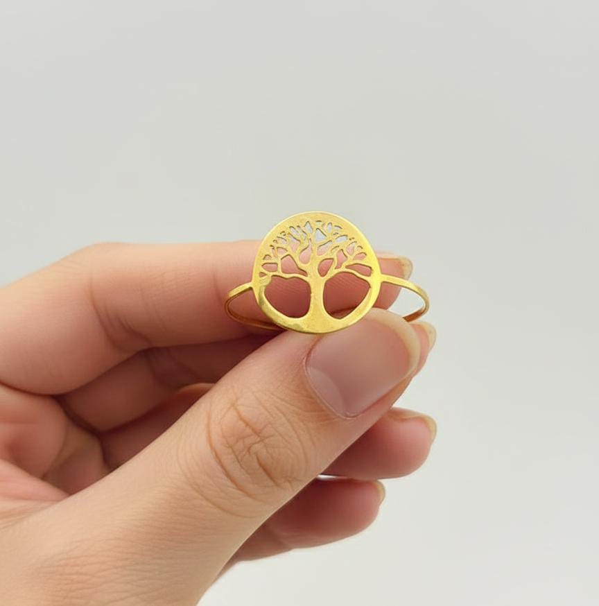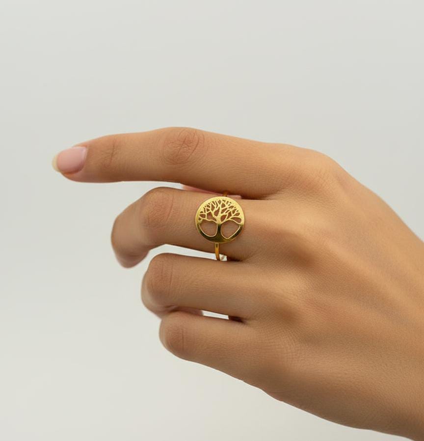 خاتم حياة الشجرة من الذهب الحقيقي عيار 18 قيراط