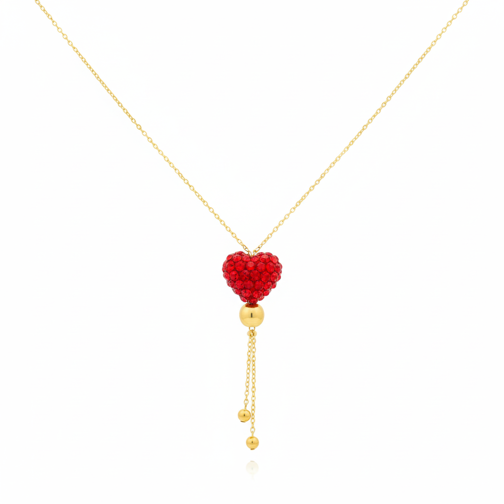 قلادة قلب أحمر سواروفسكي من الذهب الحقيقي عيار 18 قيراط