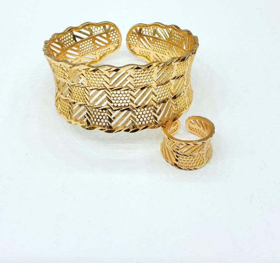 If you're in the mood for boldness, embrace the chunky gold bangle as your statement piece. These singular accessories speak volumes about your style, whether you're a traditionalist or a modern trendsetter. A plain hammered gold bangles design, such as the 18K Real Saudi Gold Flower Bangle, is a versatile choice that seamlessly spans the spectrum from traditional to contemporary. Wear it alone to let it take center stage, or combine it with other complementary pieces for a personalized touch.