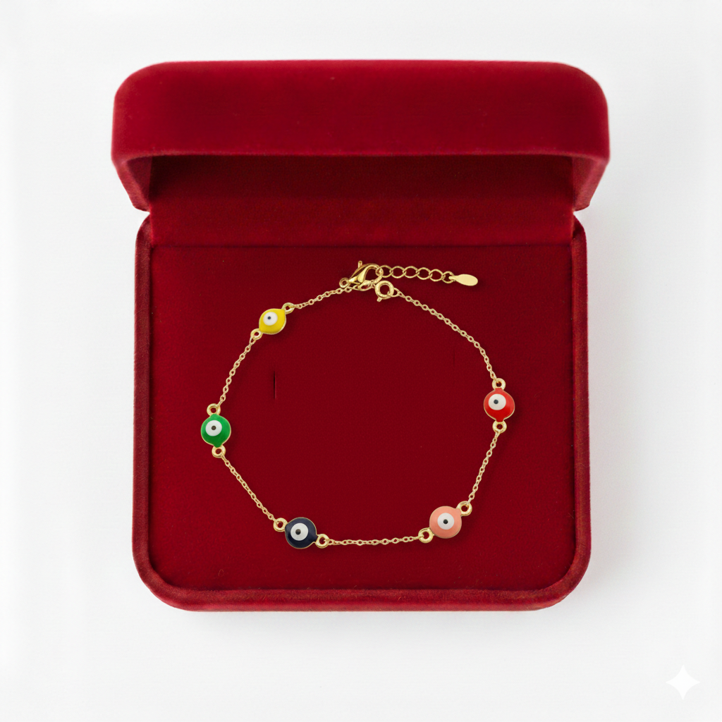 18K Real Gold Bracelet 5 Evil Eye Pendant