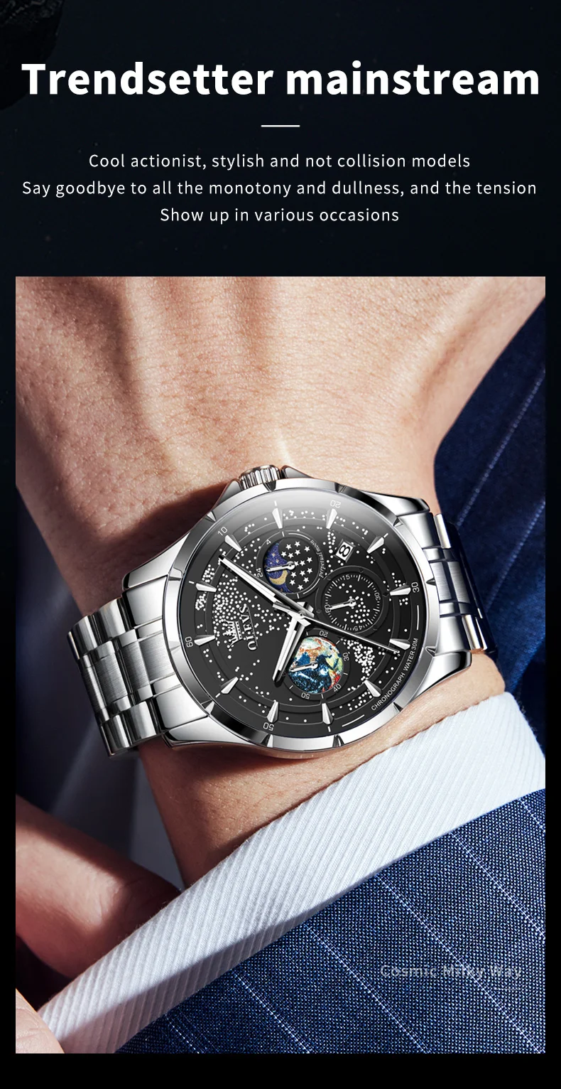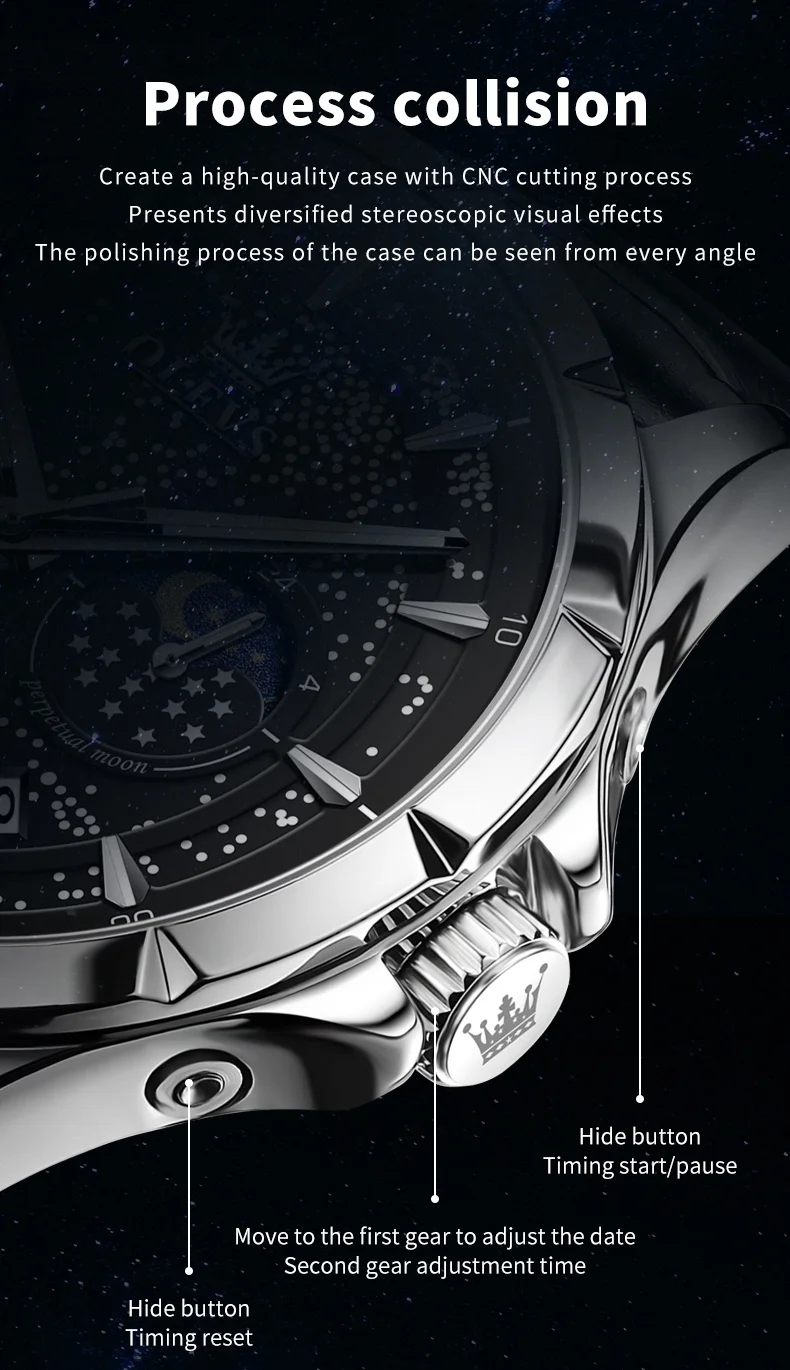 Original Quartz Wristwatch,Waterproof, Luminescent Stainless steel, Moon Phase,
