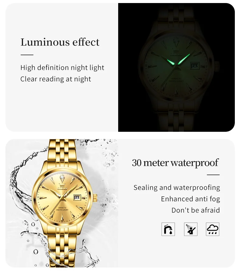 Luxury Quartz Watch Waterproof Luminous Stainless Steel Date Watches For Woman Original Bracelet Set