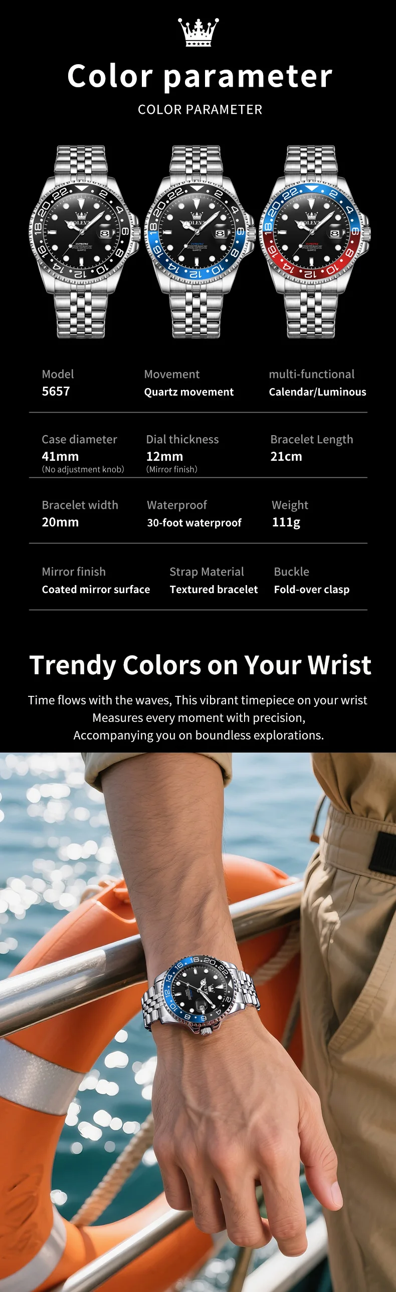 Business Dress Wristwatch Waterproof Calendar Moon phase Quartz Watch Men