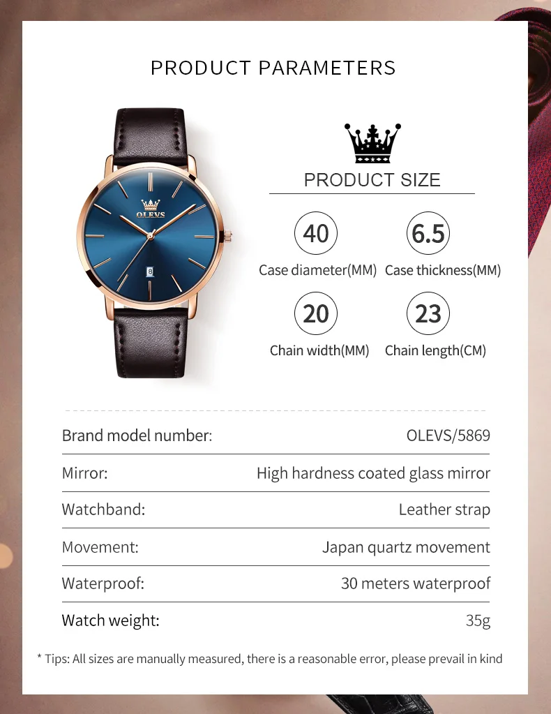 OLEVS 5869 Fashion Genuine Leather Men's Watch