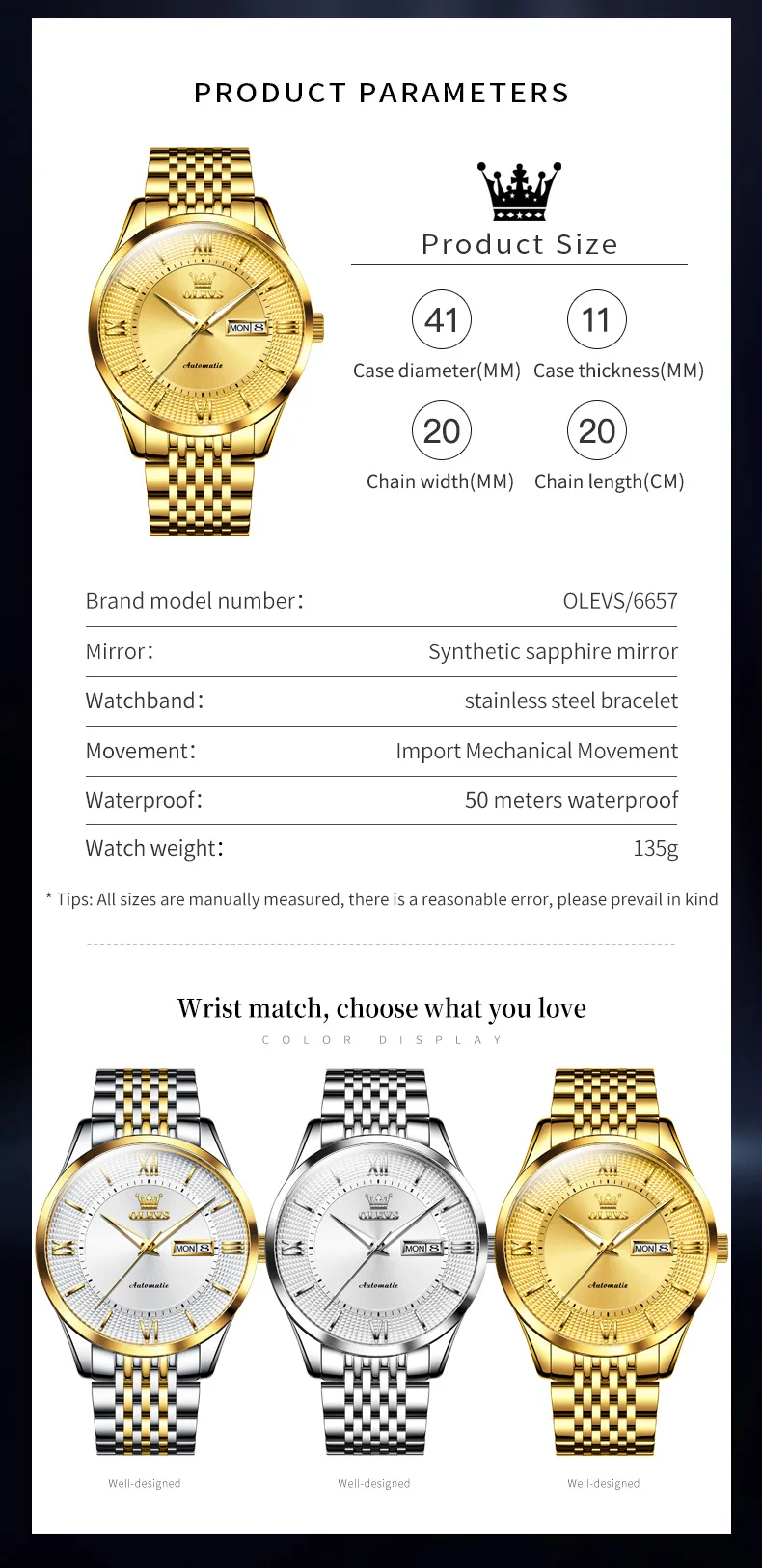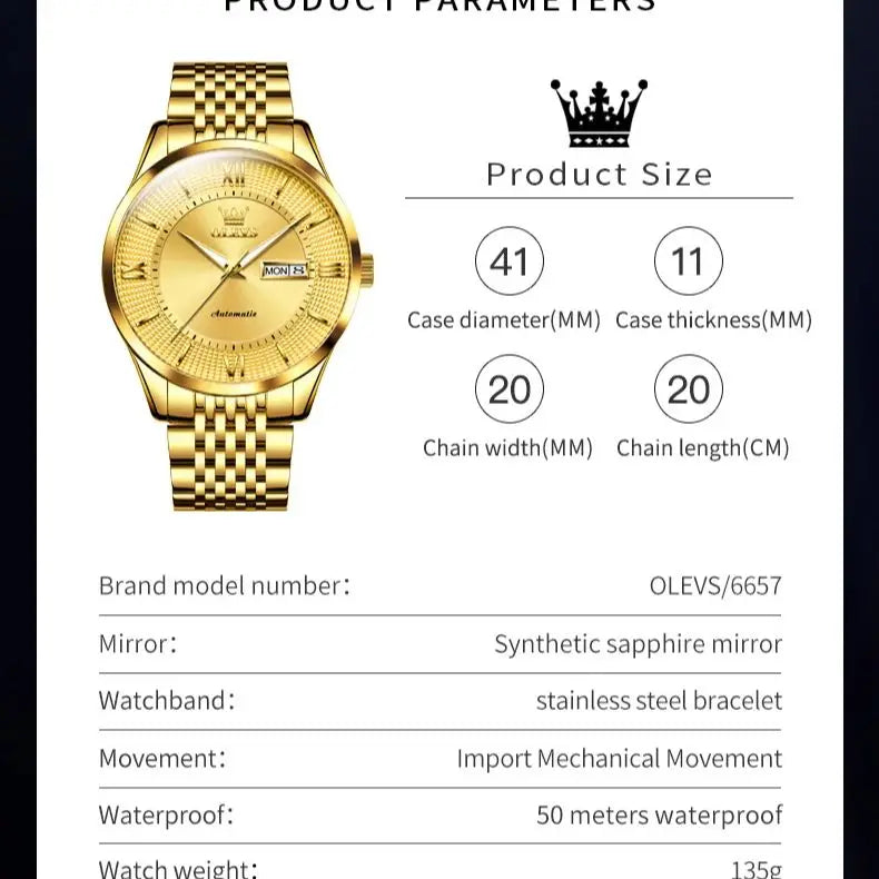 OLEVS 6657 Imported Automatic Movement Men's Watches High End Mechanical Watch for Men Waterproof Date Week Wristwatch Man