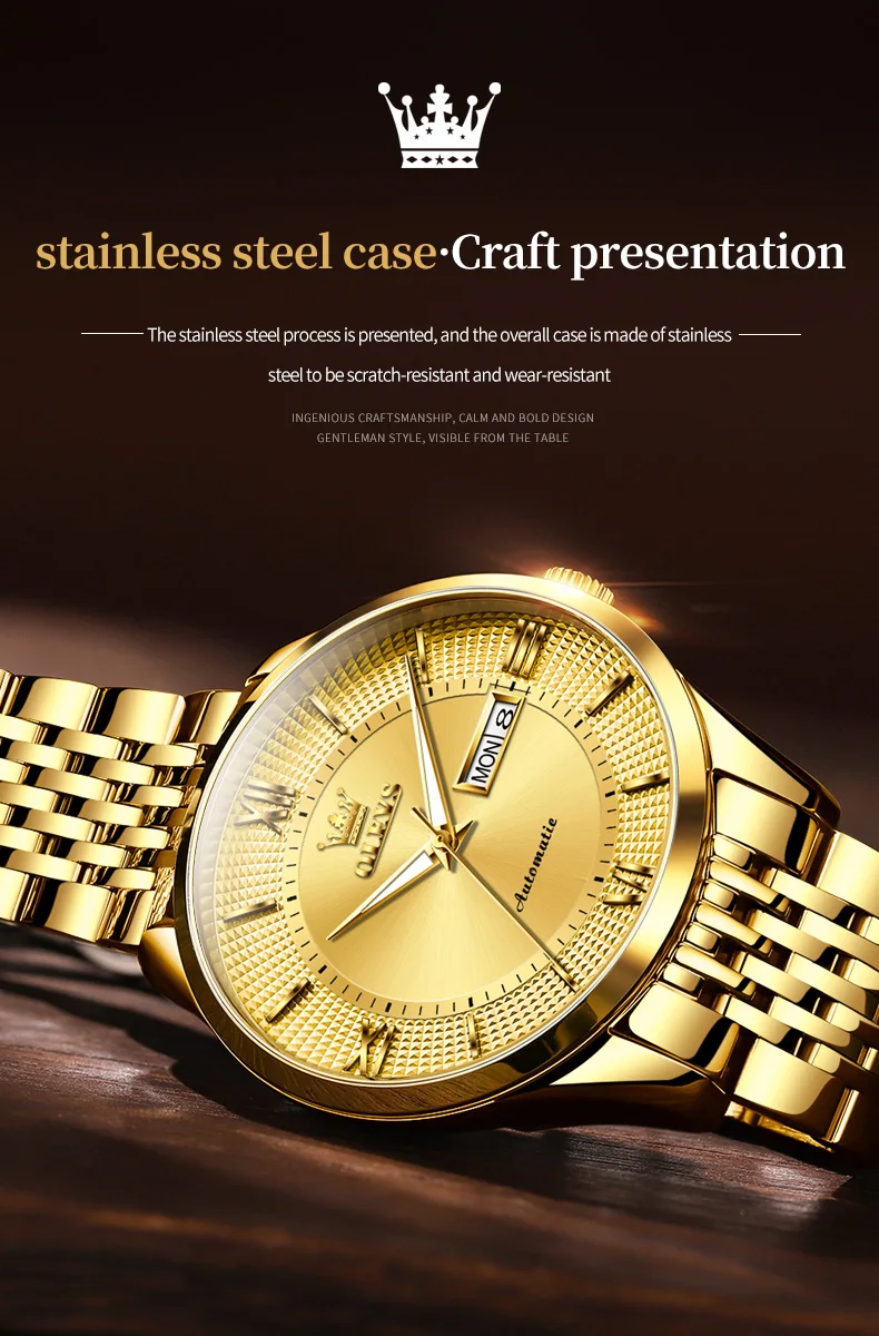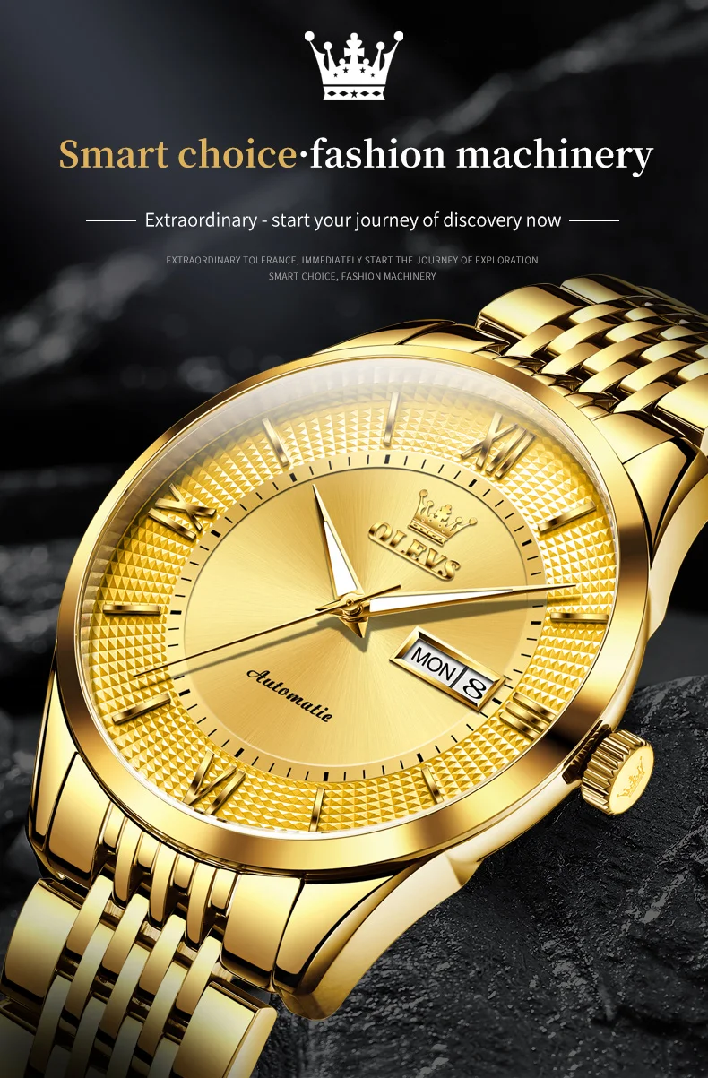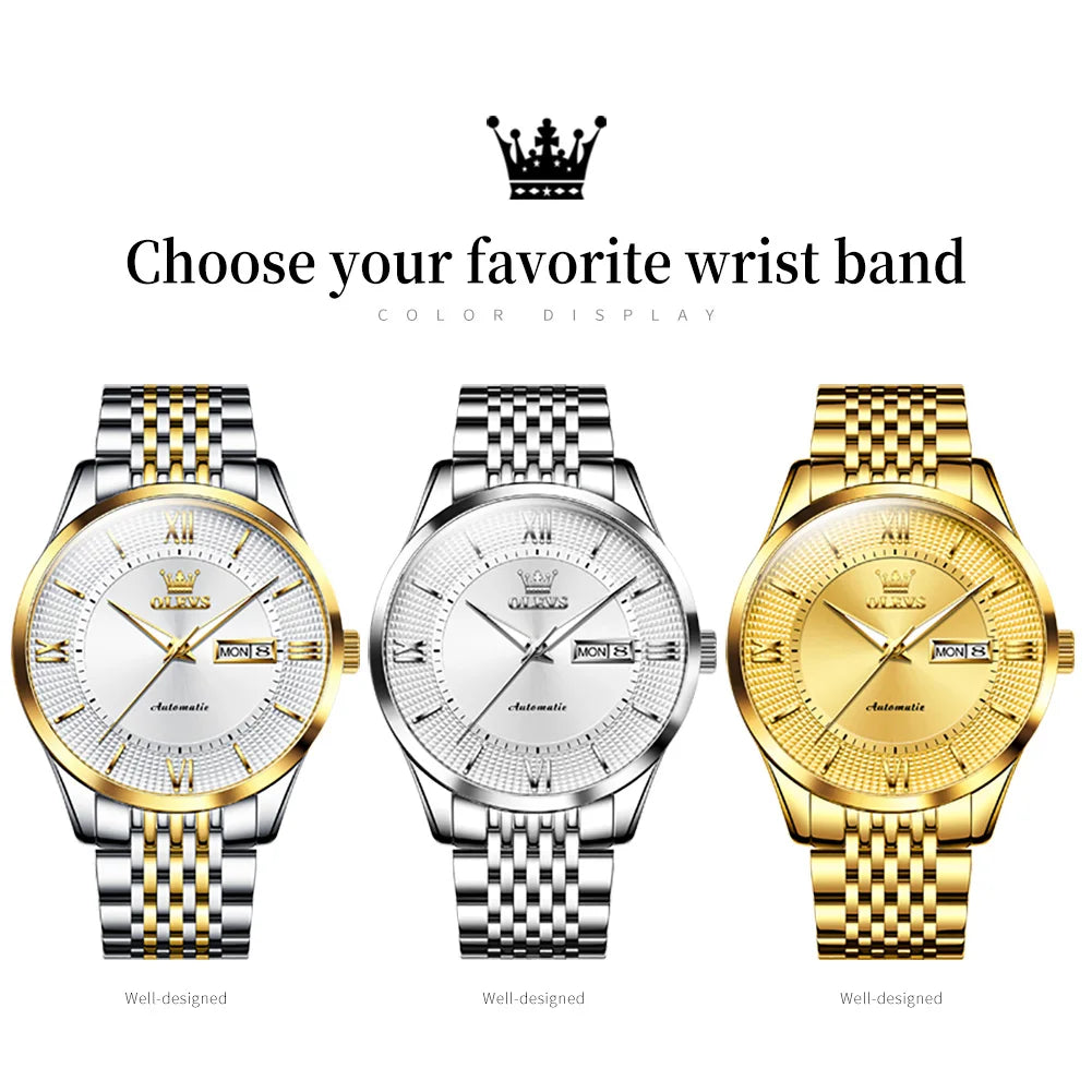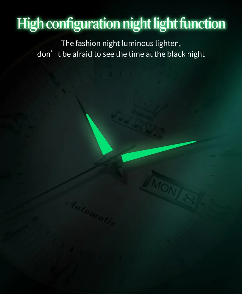 Original Fashion 50M Waterproof Luminous Watches For Men Mechanical Watch Stainless Steel Day-Date Watch