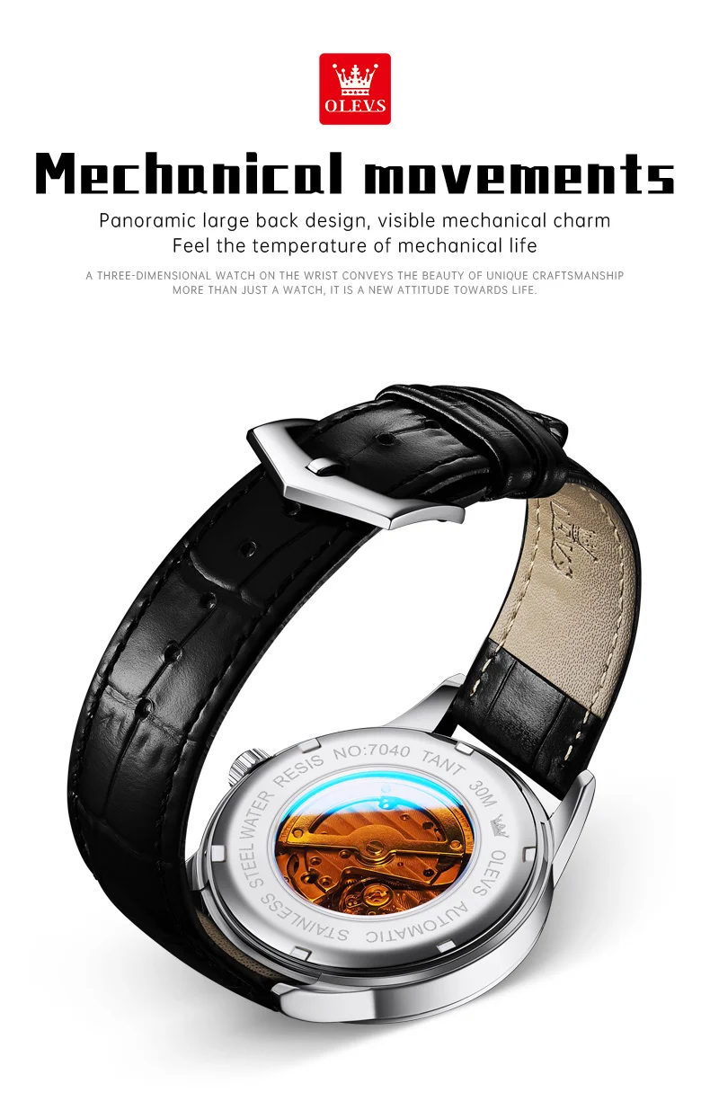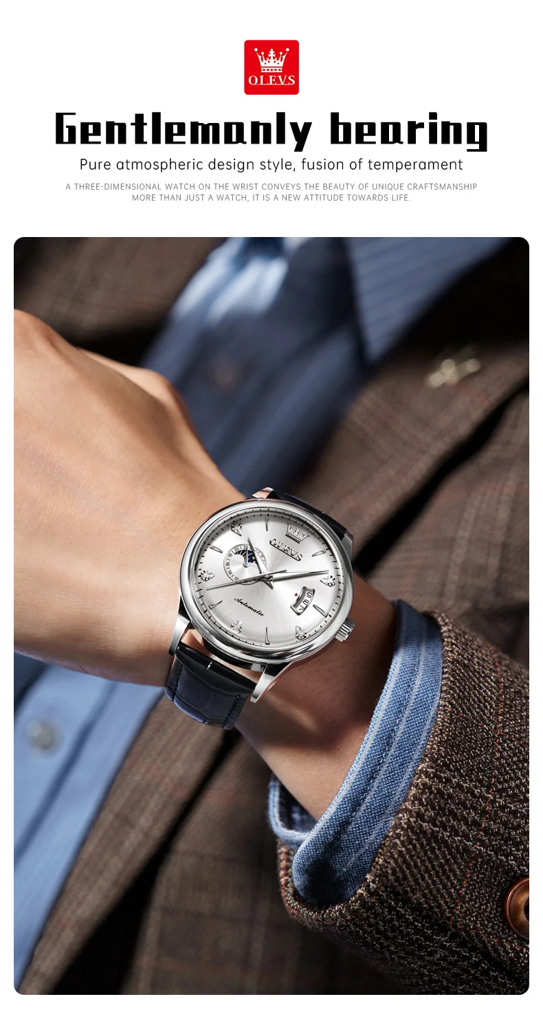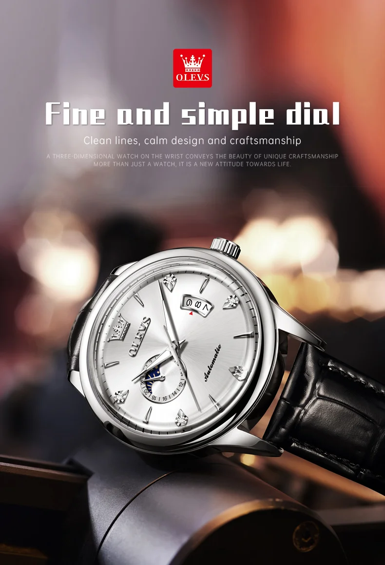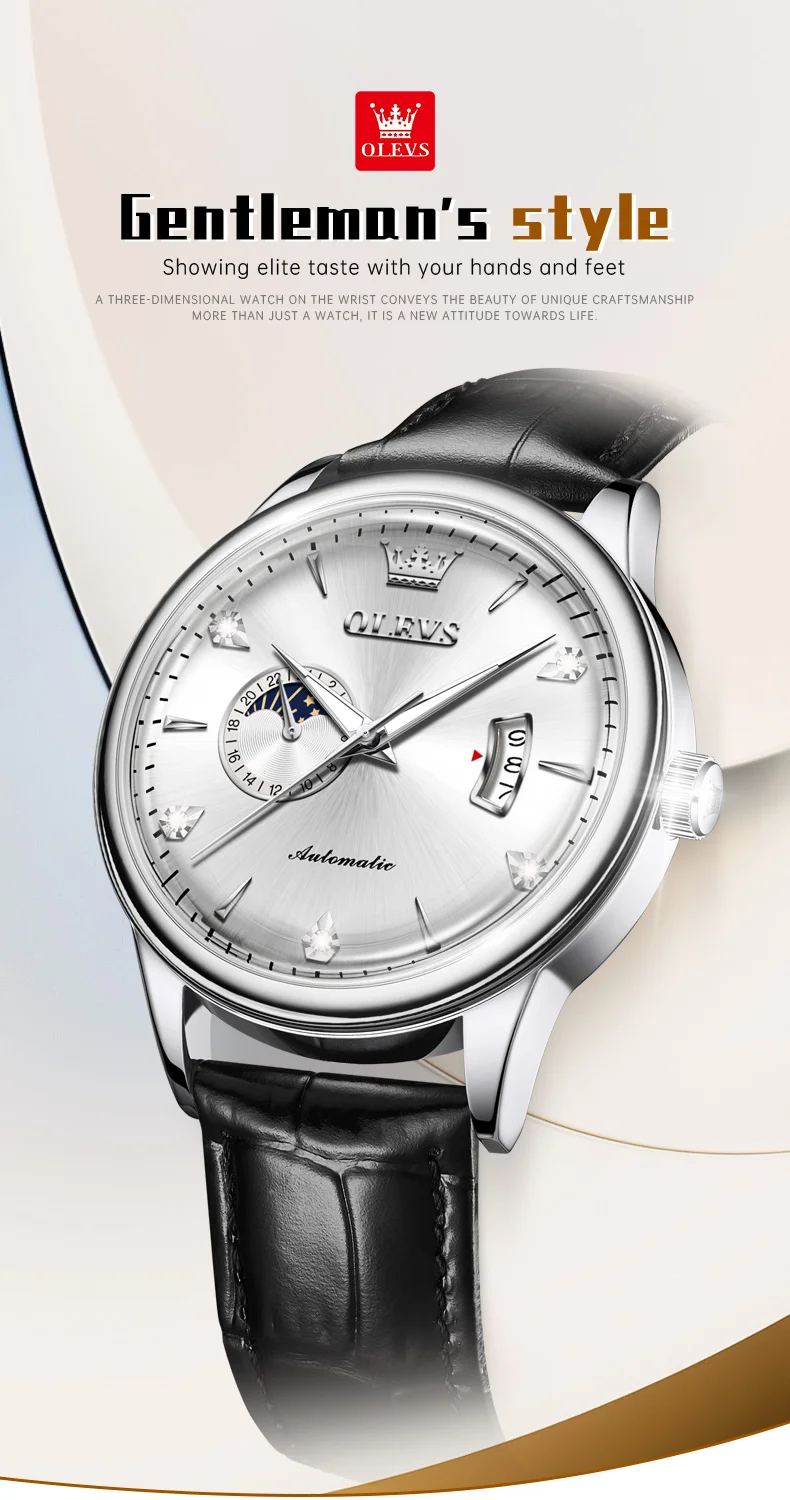 OLEVS 7040 24h Moon Phase Men's Watch - Sliver black