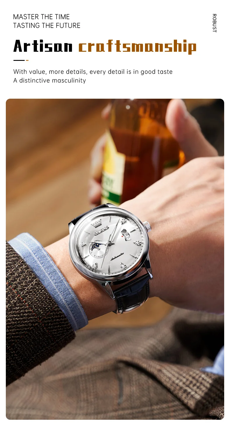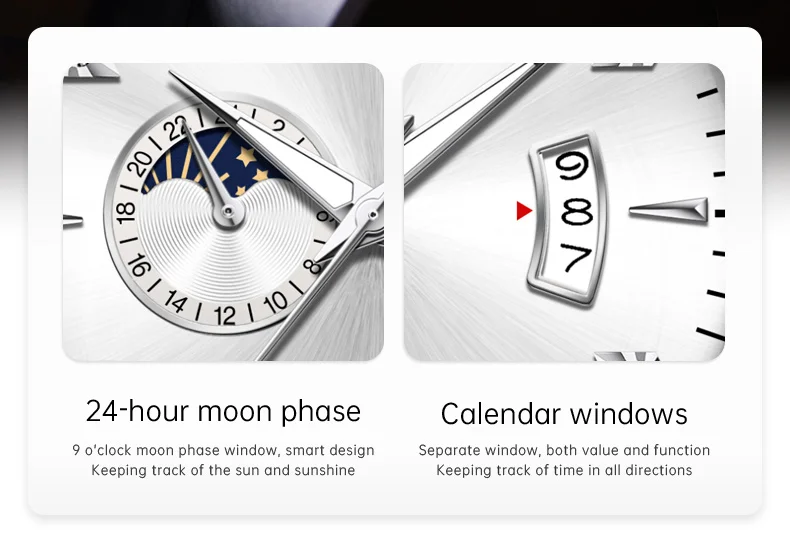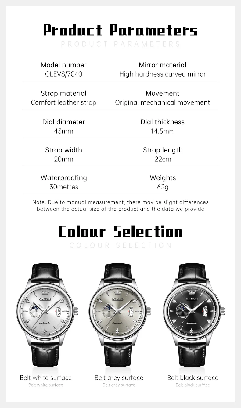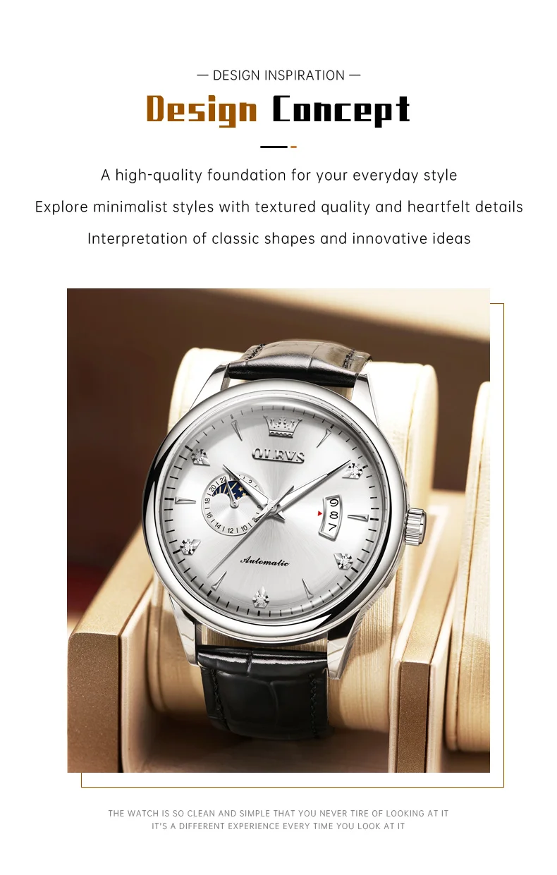 OLEVS 7040 24h Moon Phase Men's Watch - Sliver black