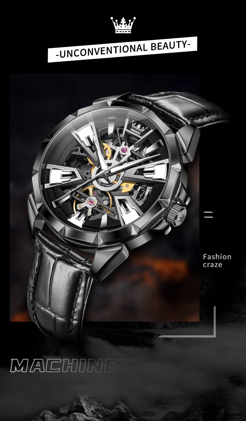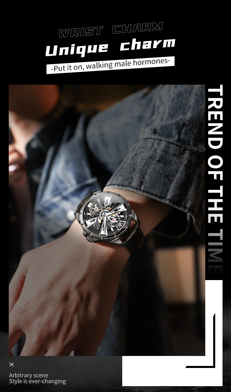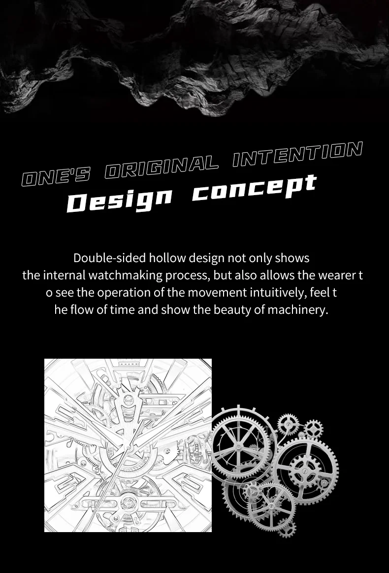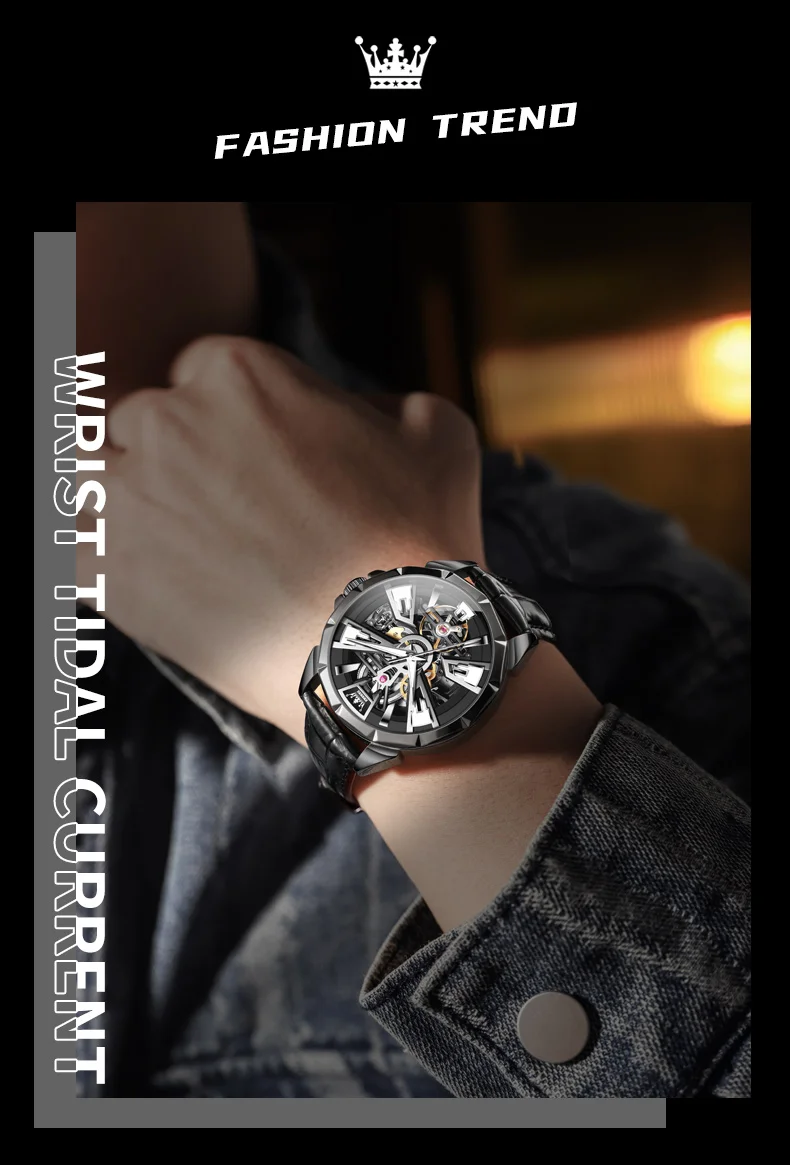 Leather Strap Waterproof Function Double-sided Hollow HD Luminous Automatic Mechanical Wristwatch for Men