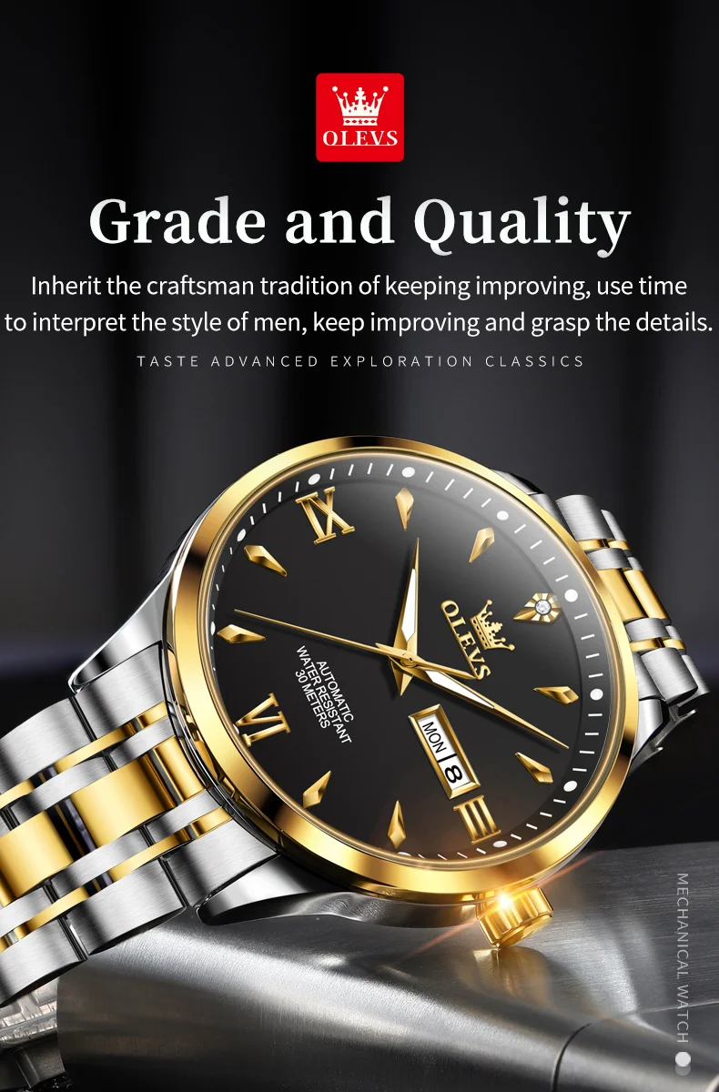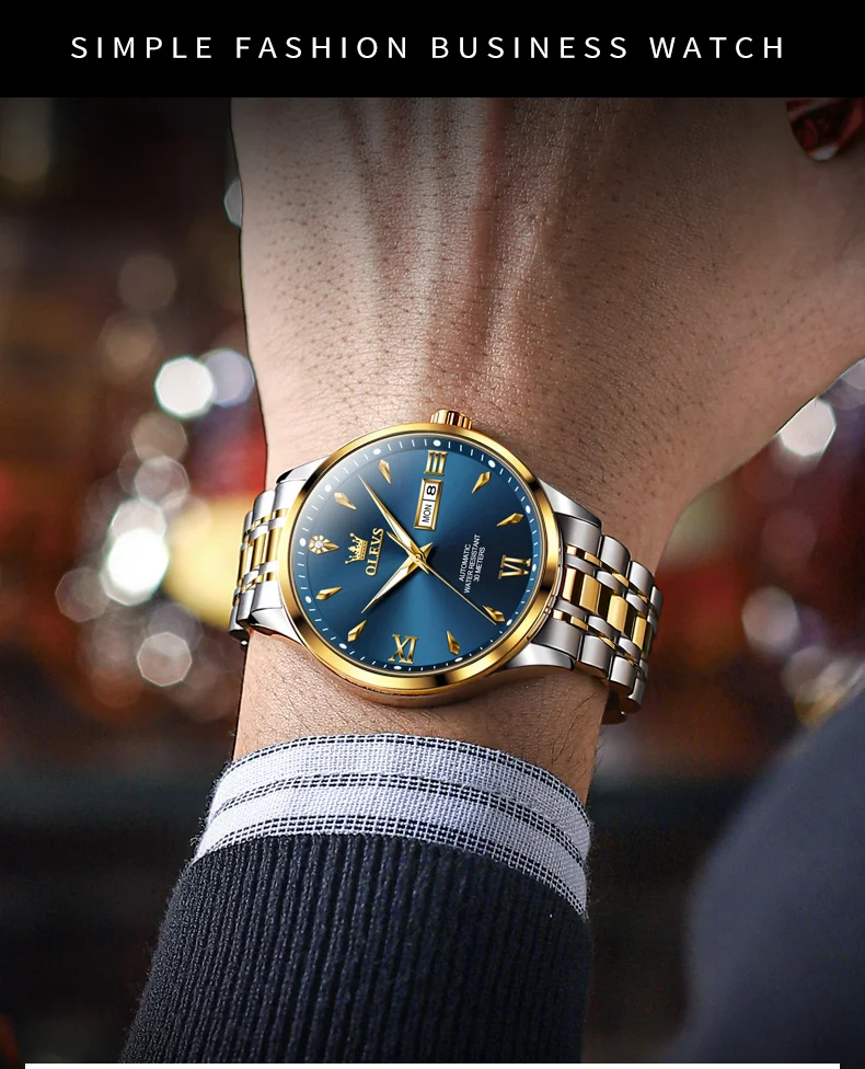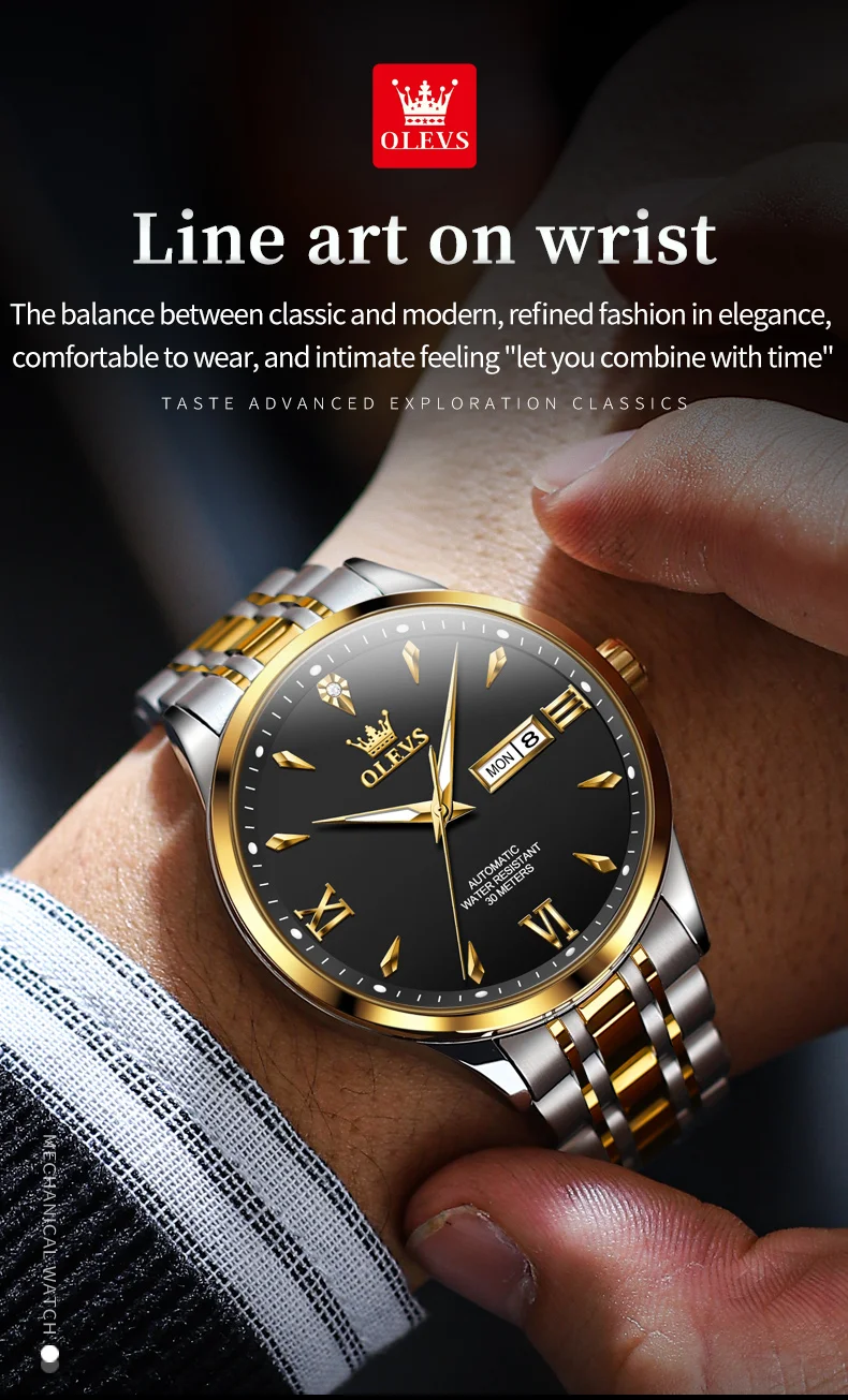 Luxury Luminous Function Automatic Mechanical Watch 30m Waterproof Line Art Week Date Watches For Man Gift