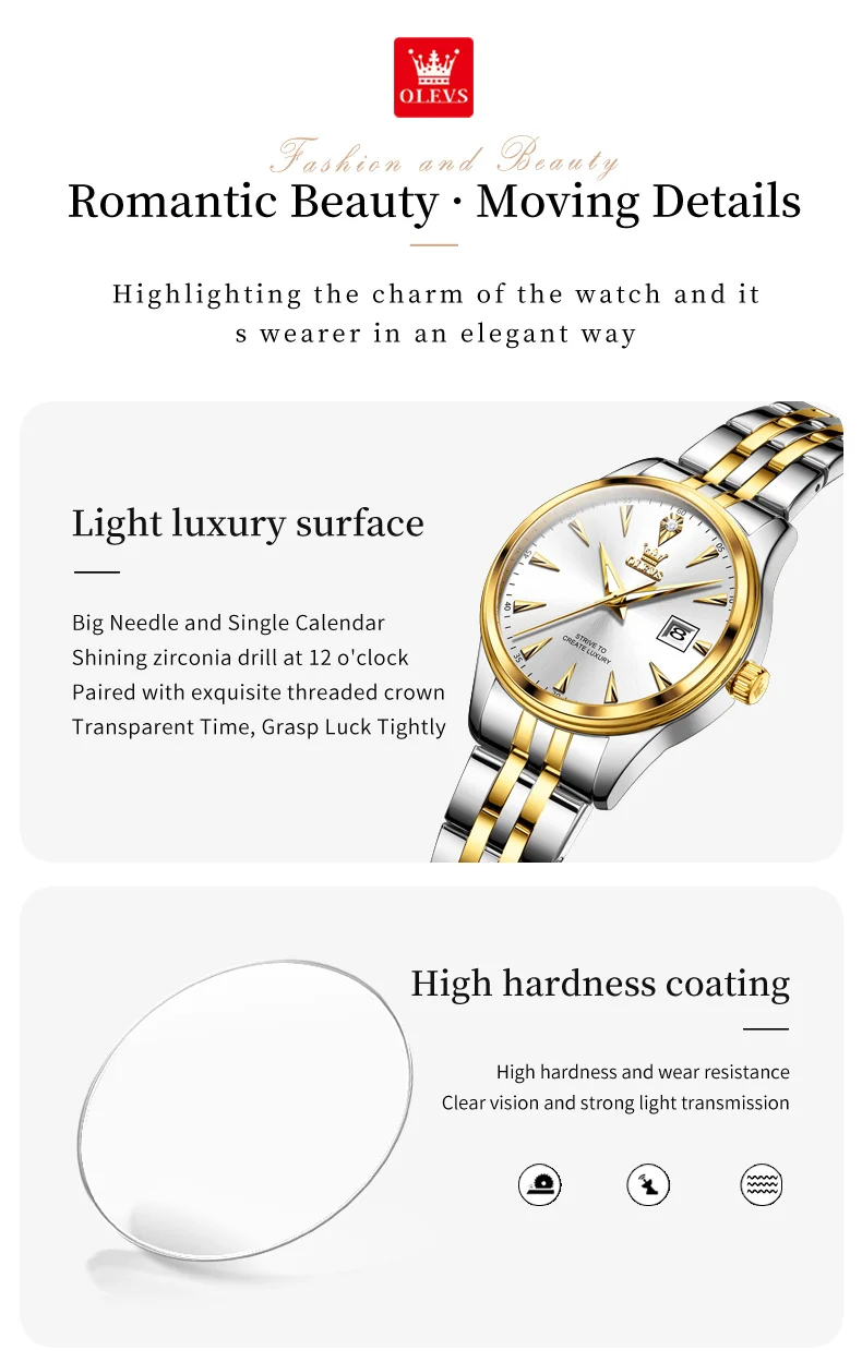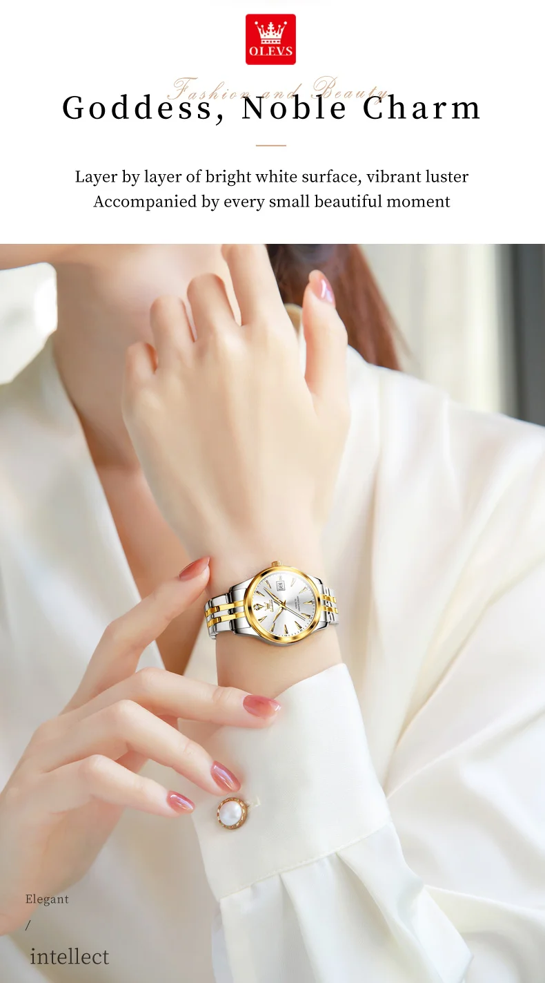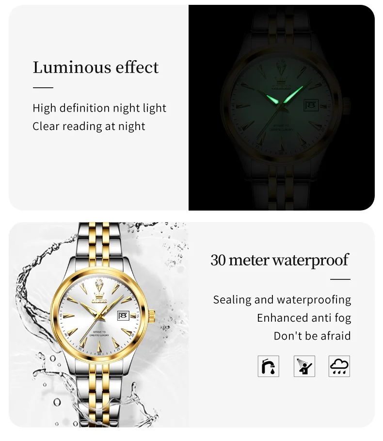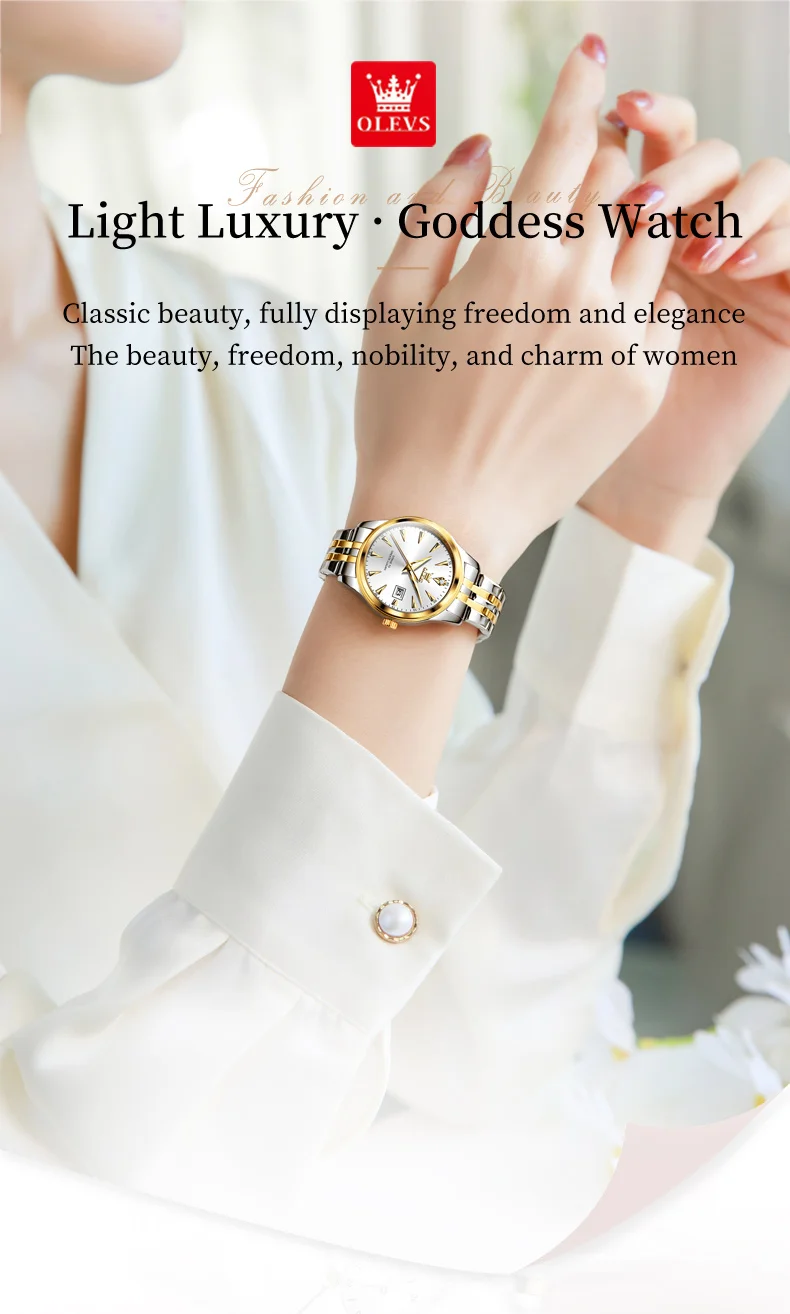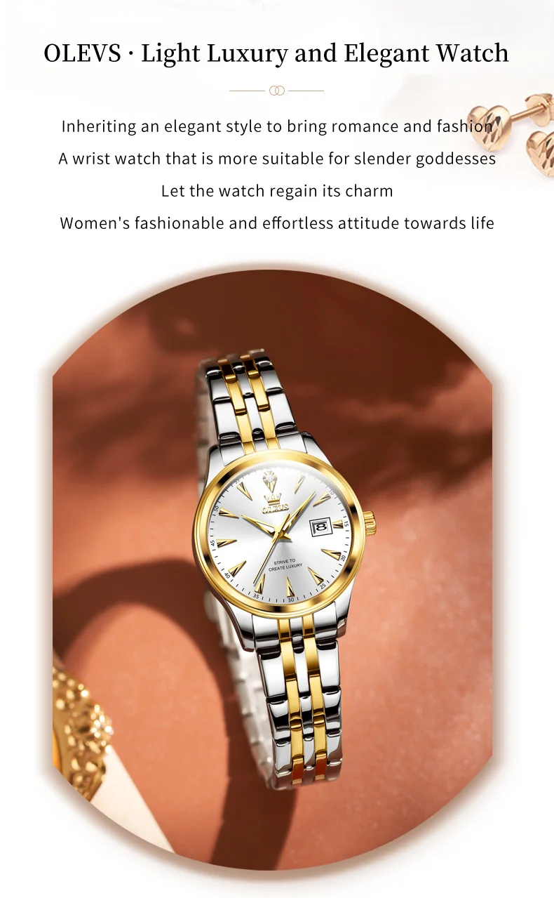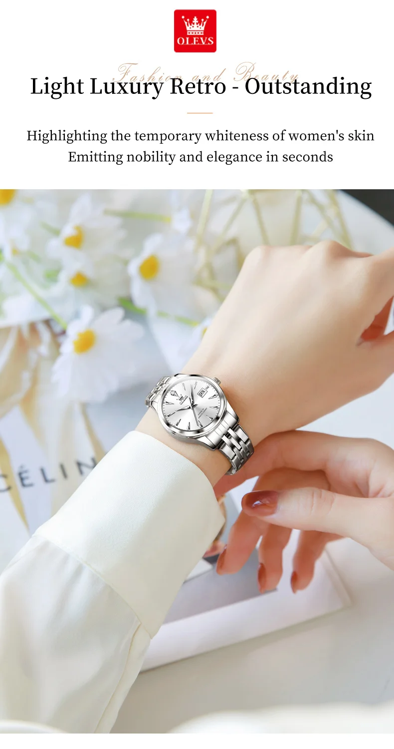 OLEVS Brand Fashion Quartz Watch Women Luxury Stainless Steel Waterproof Luminous Date Womens Dress Watches Relogio Feminino