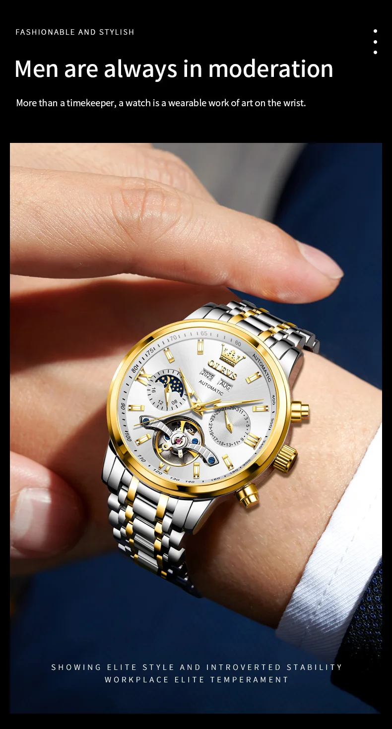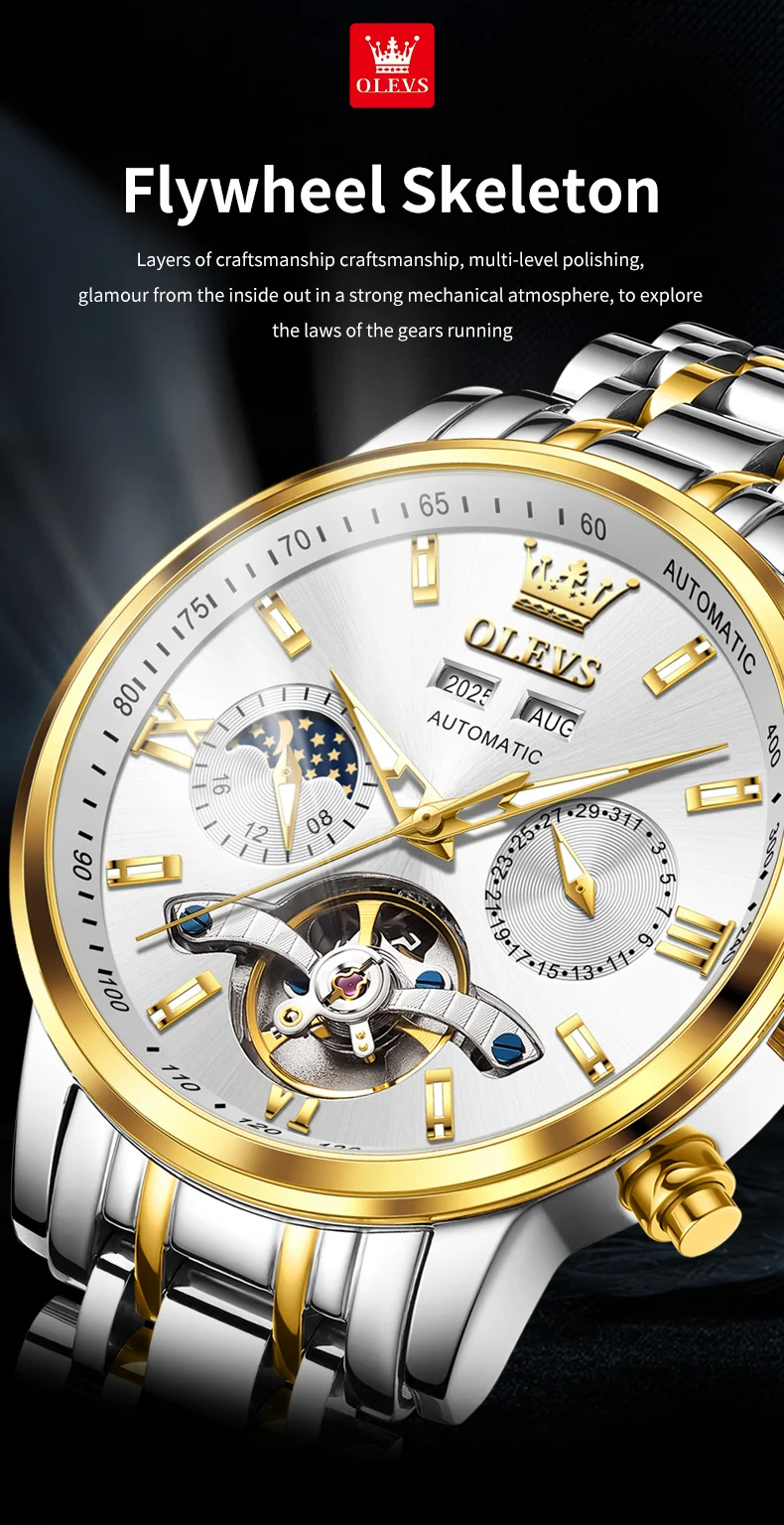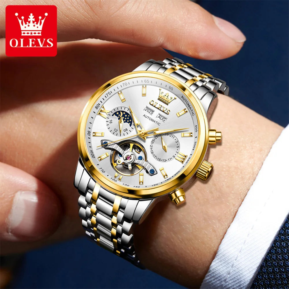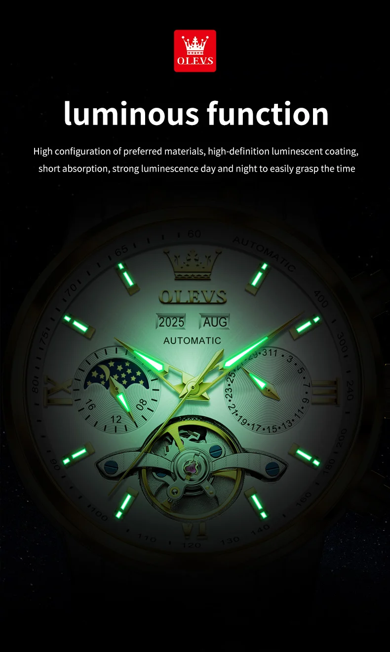 Stainless Steel Original Brand Automatic Mechanical Wristwatch Moon Phase Luminous Calendar