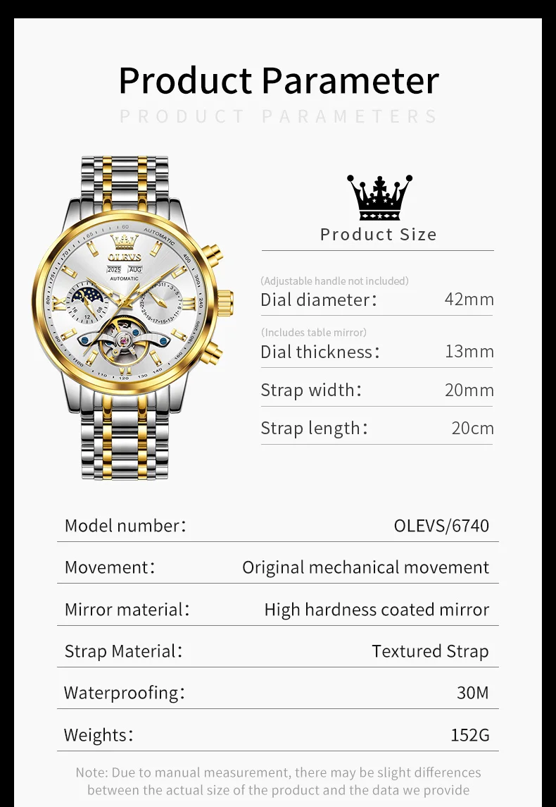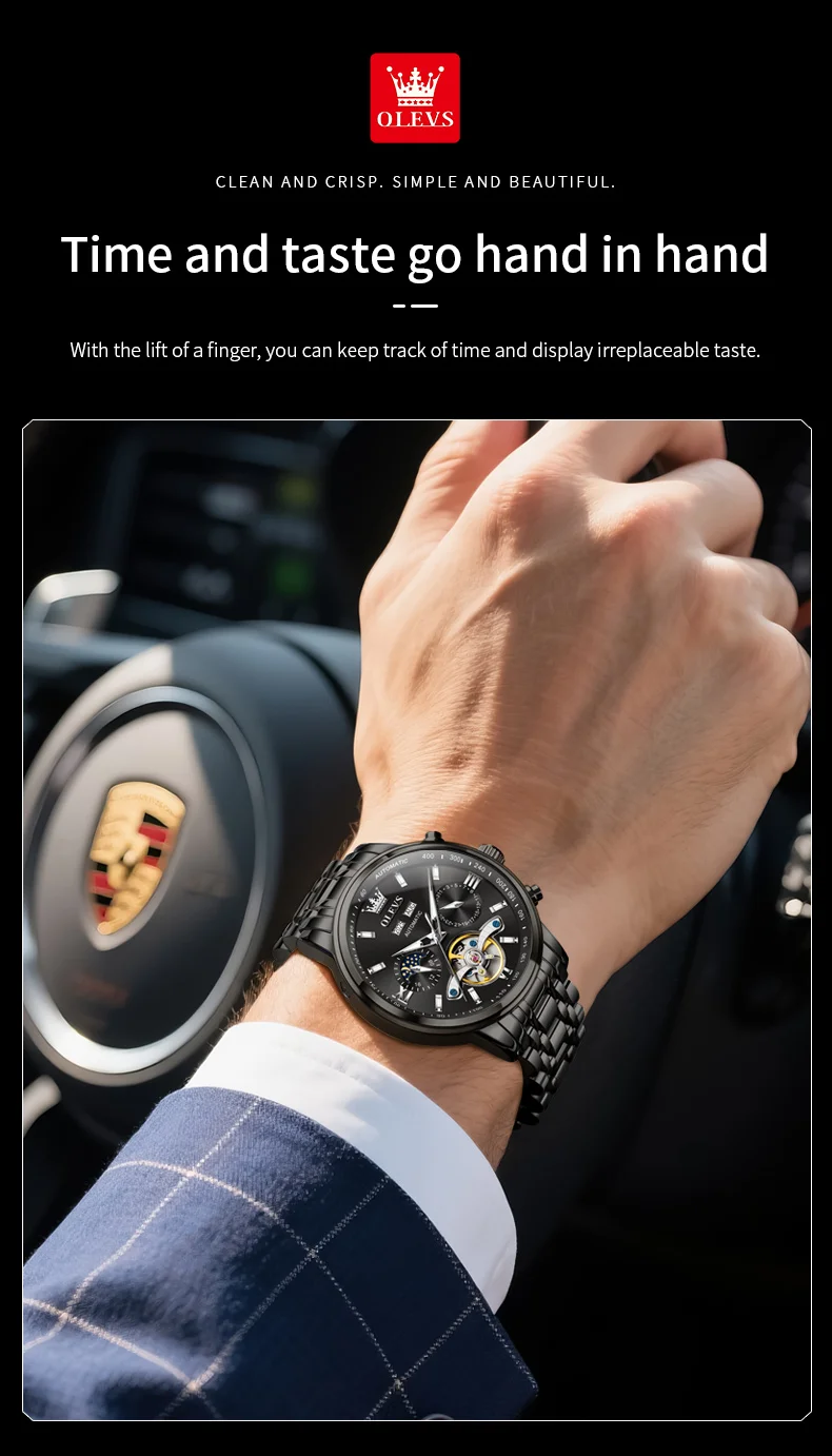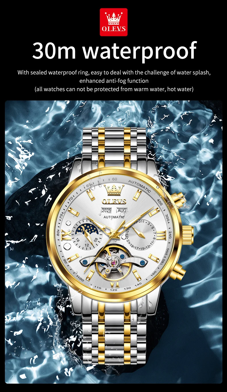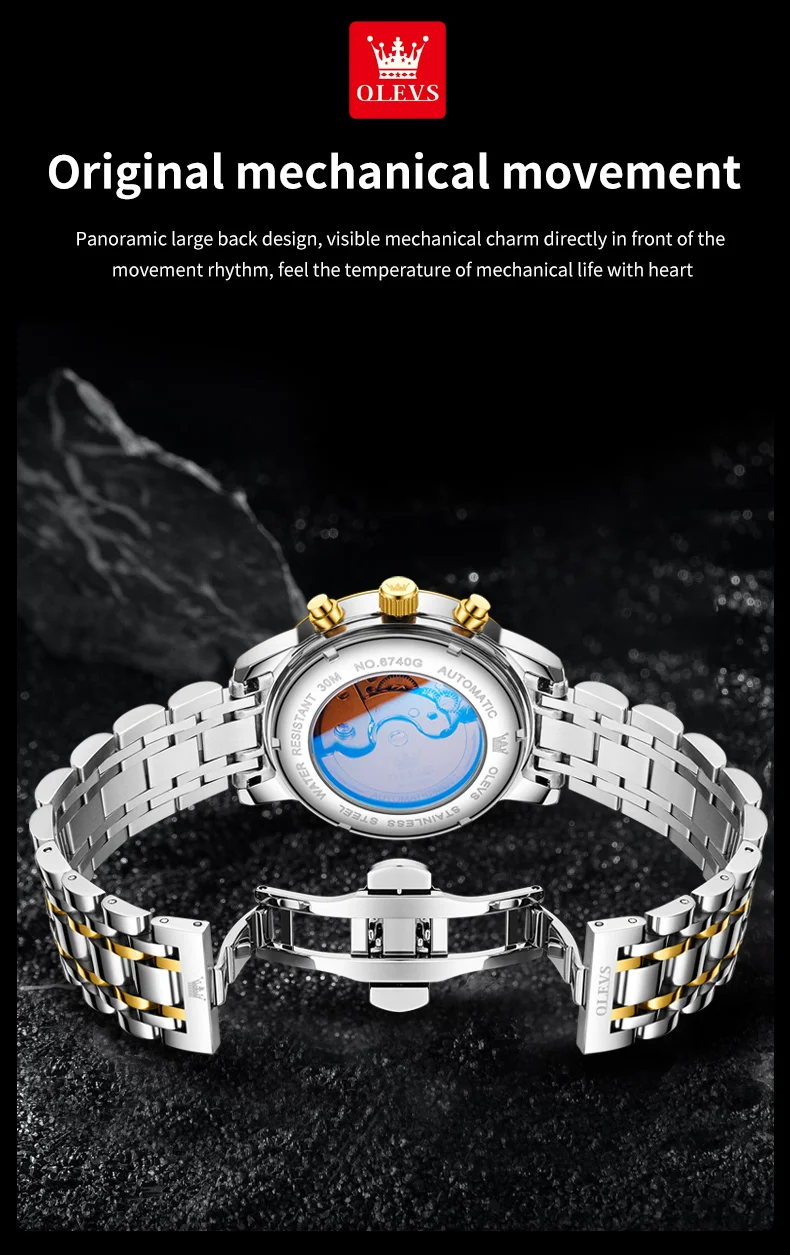 Stainless Steel Original Brand Automatic Mechanical Wristwatch Moon Phase Luminous Calendar