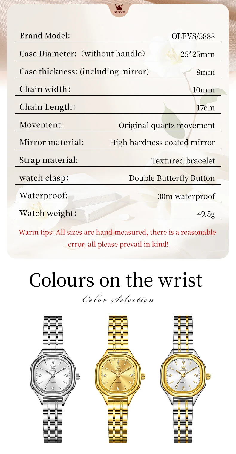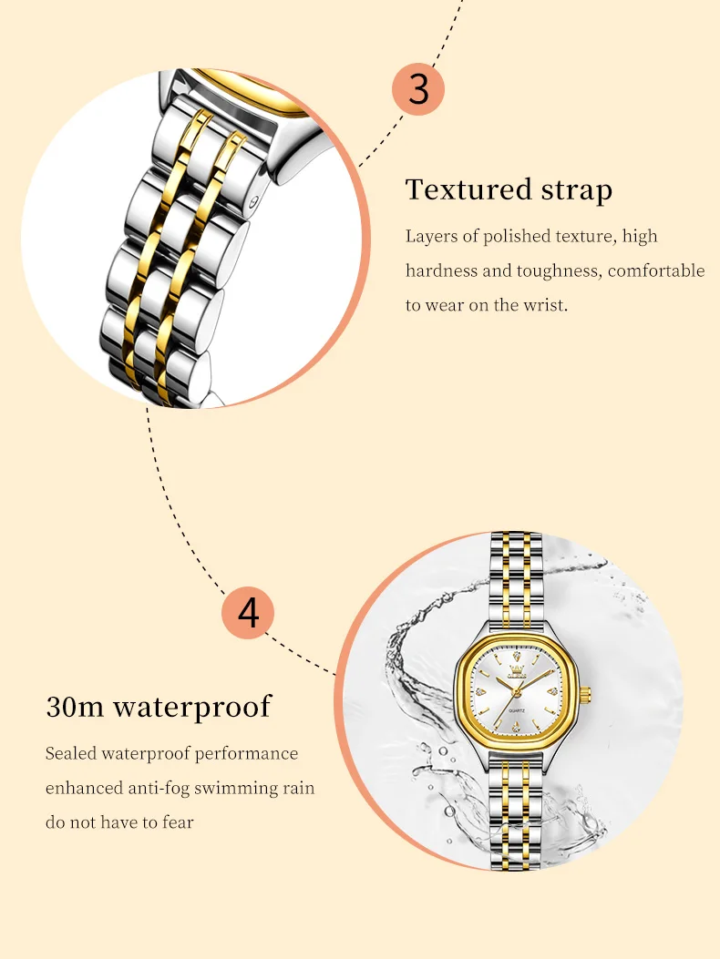 Waterproof Simple Stylish Quartz Watch for Women Stainless Steel Square Dial Original Wristwatch