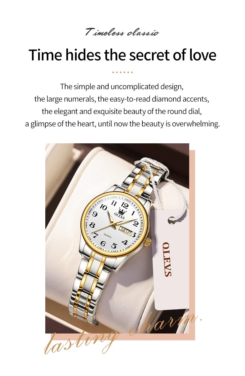• Luxury Quartz Movement :The Olevs women's watch features a luxurious quartz movement, ensuring precise timekeeping and a high-end aesthetic.