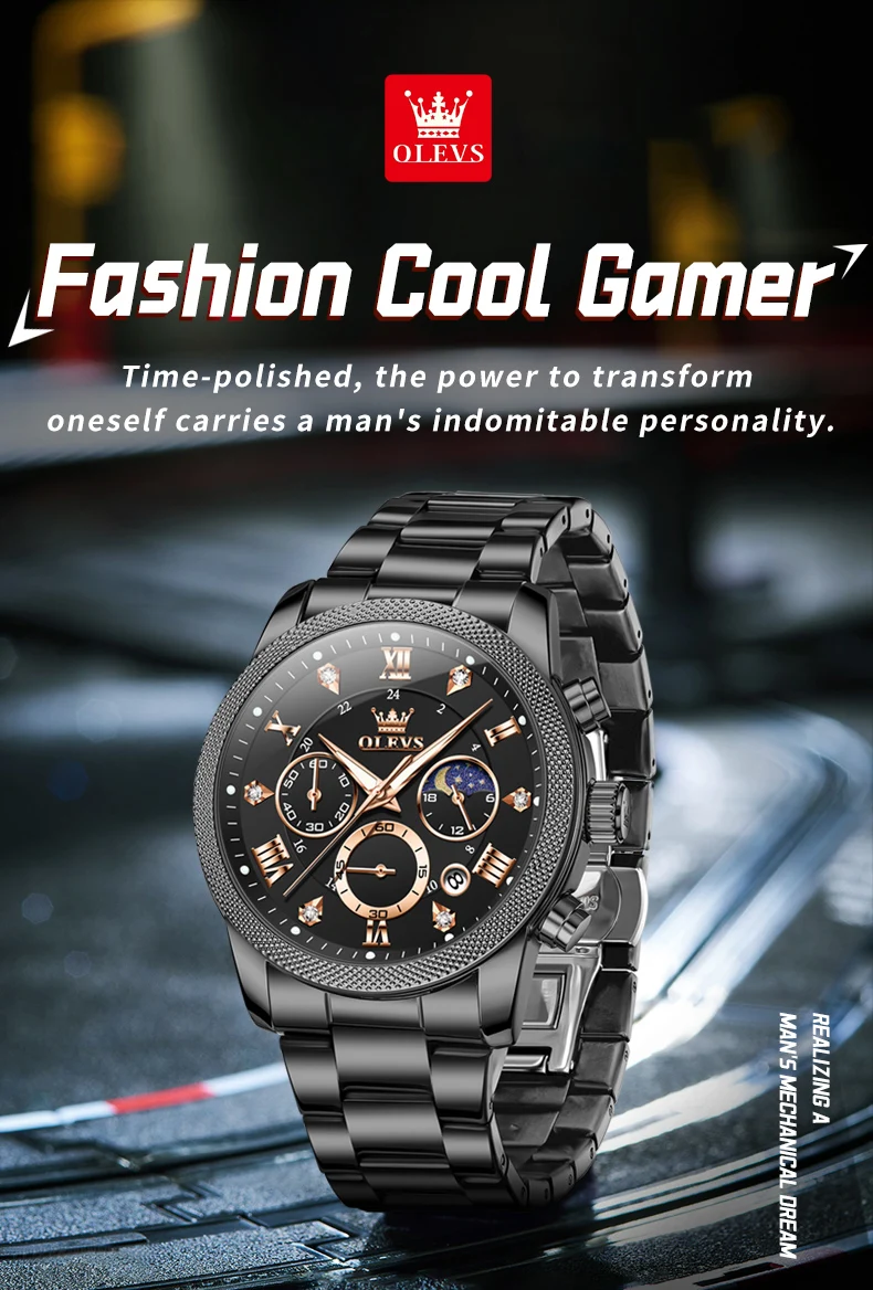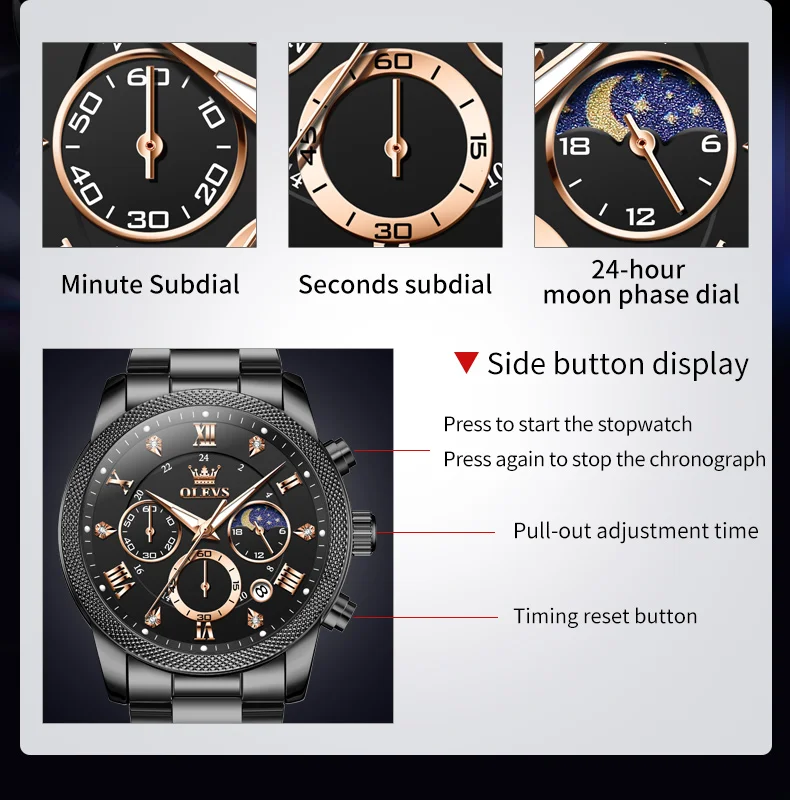 Trendy 30m Waterproof Date Quartz Watch for Man luminous box moon phase Brand wristwatch