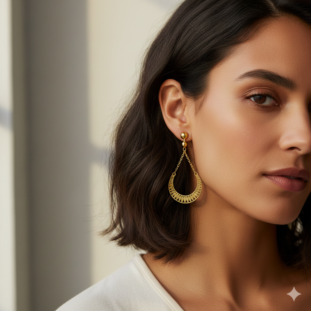 18K Real Gold Lunar Moon Earrings