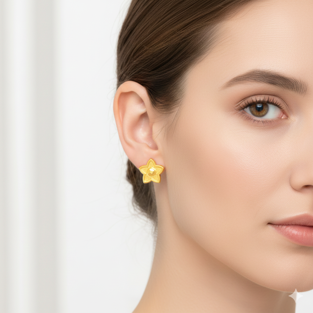 18K Real Gold Star Dot Earrings