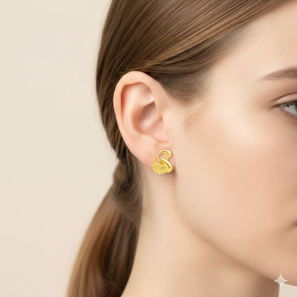 18K Real Gold Swan Earrings