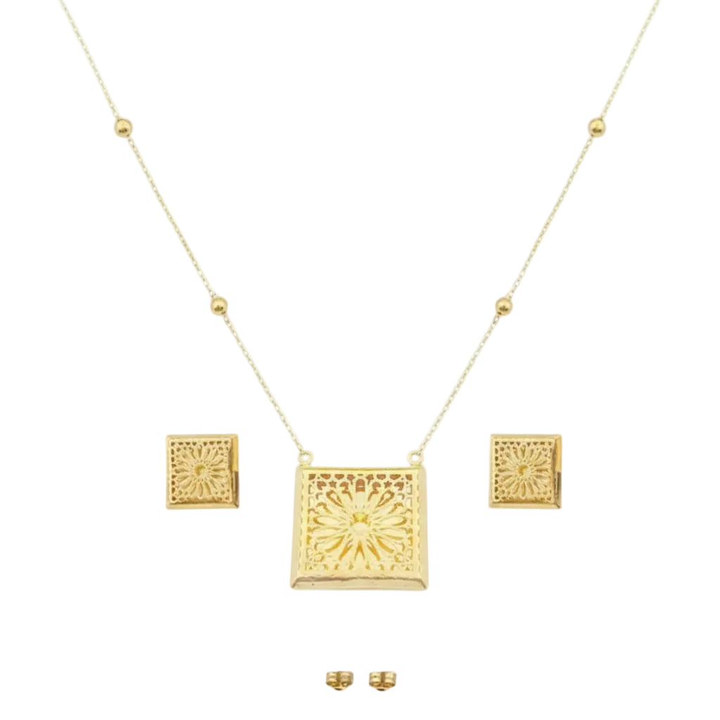 Elevate your collection with our stunning 18K Gold Arabic Style Set, exclusively designed to reflect the rich heritage and timeless beauty of Middle Eastern artistry. This intricately crafted set includes a necklace, earrings, and bracelet—each piece made from genuine 18K gold for lasting brilliance and luxury.