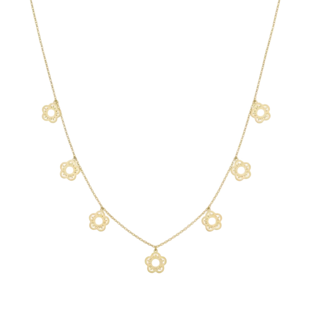 18K Real Gold 7 Lilly Flower Choker