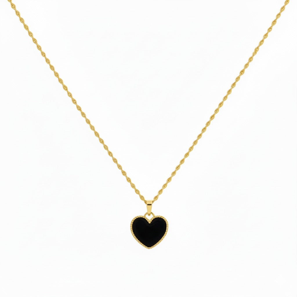 18K Real Gold Black Heart Necklace