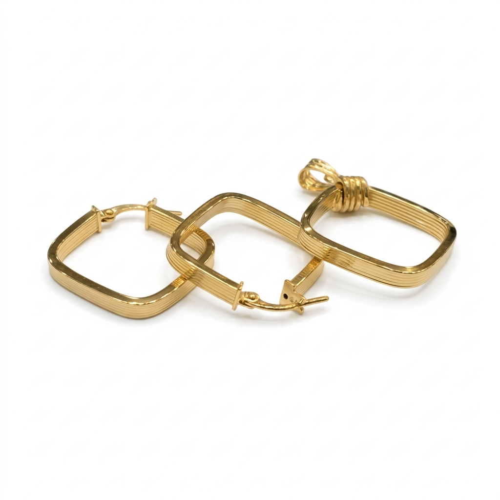 18K Gold Square Jewelry Set | Elegant Gold Earrings & Pendant Set – Embellish Gold Jewelry