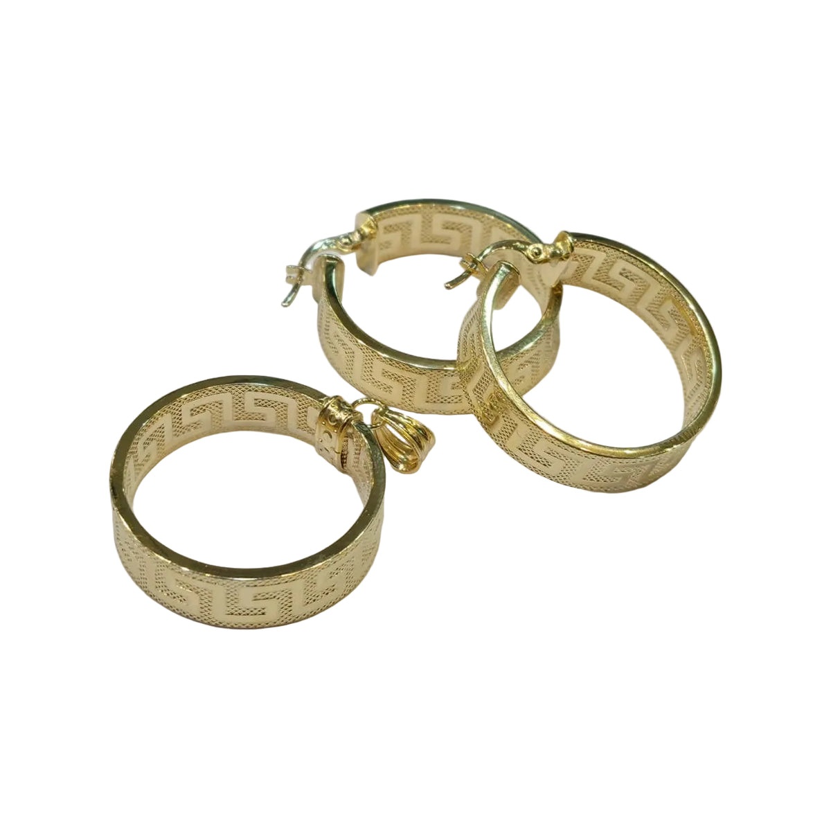 The intricate Greek key detailing reflects light beautifully, adding a radiant shine that enhances any outfit. Perfect for weddings, parties, office events, or daily wear, this set combines designer-inspired style with the timeless beauty of solid gold.