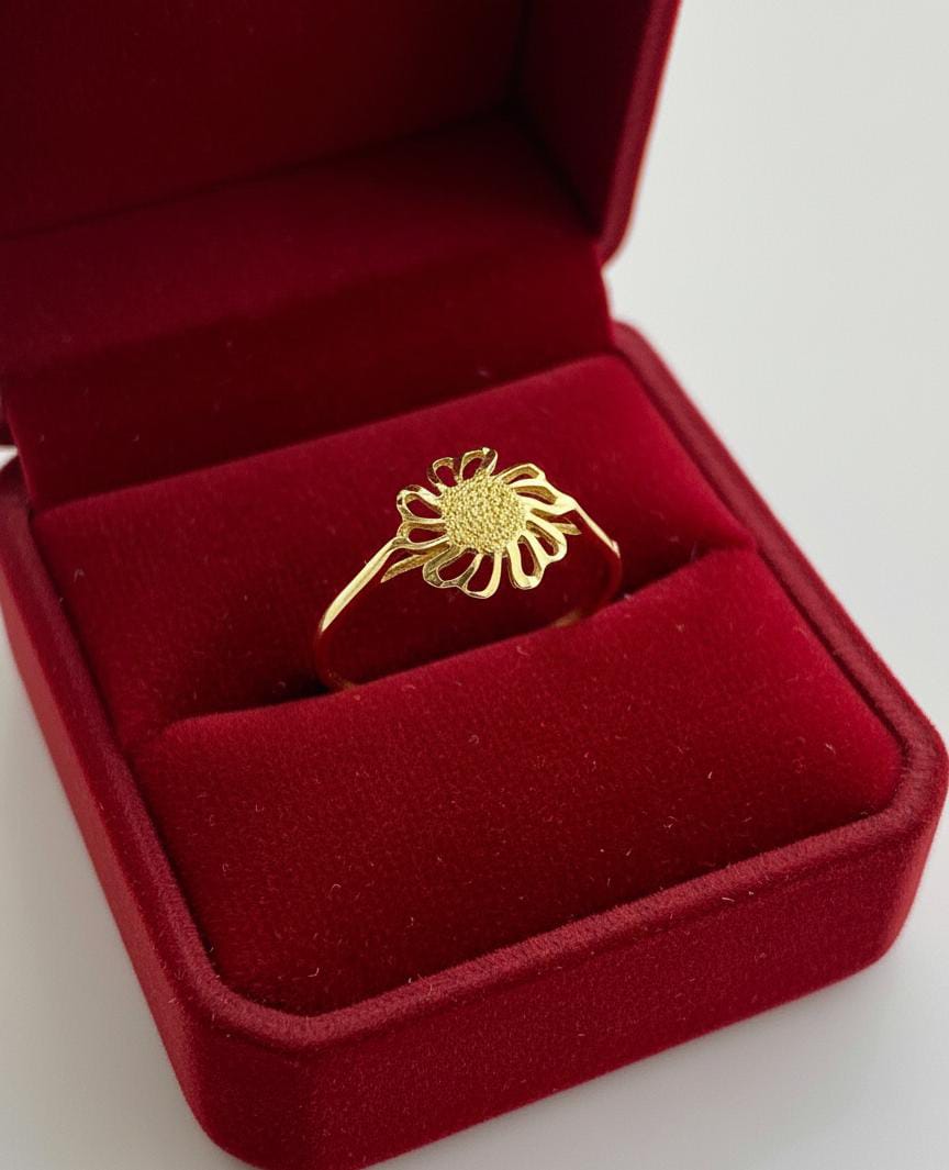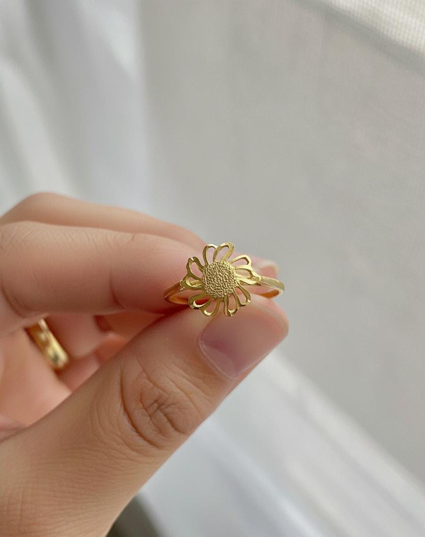 Whether you're dressing up for a celebration or adding a subtle glow to your daily look, this gold flower ring is the perfect accessory.