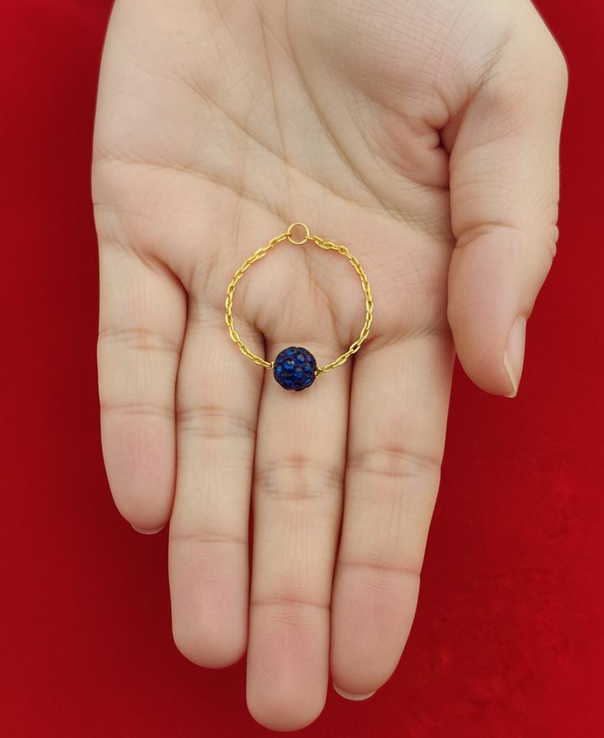 18K Real Gold Blue Swarovski Chain Ring - 4