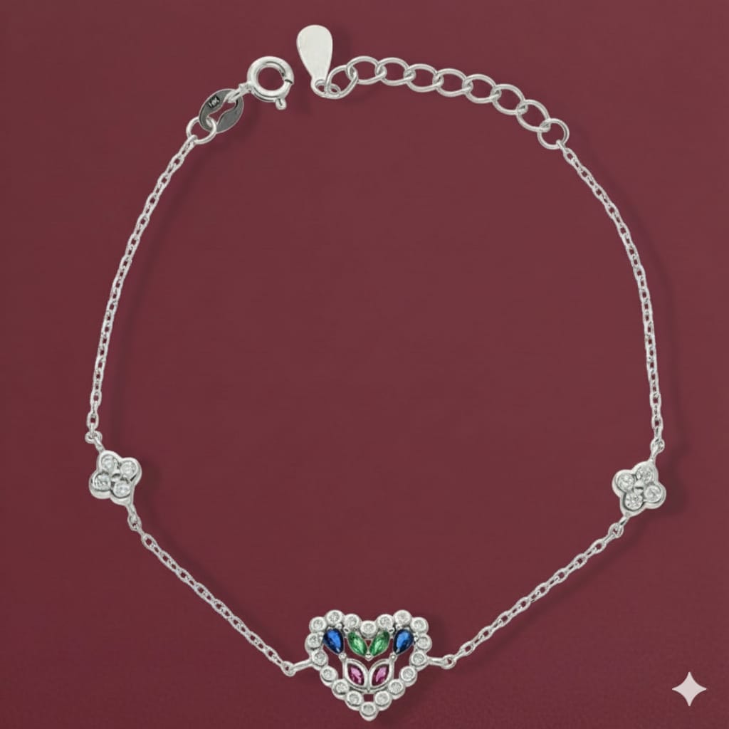 925 Sterling Silver Heart Clover Bracelet | Elegant Lucky Charm Bracelet – Embellish Gold Jewelry