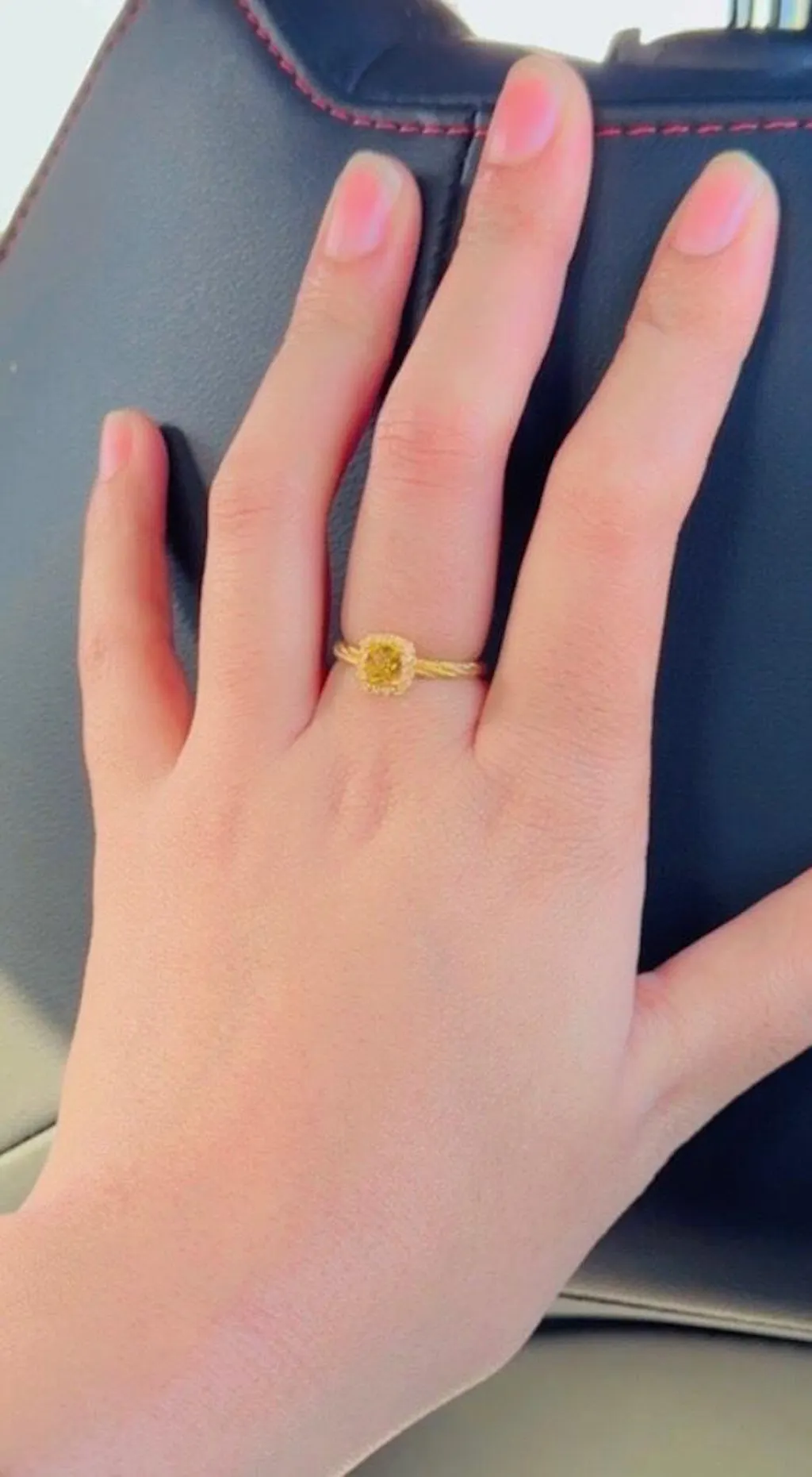 18k Gold Super Light Hallow Sugar Cube Ring - 5